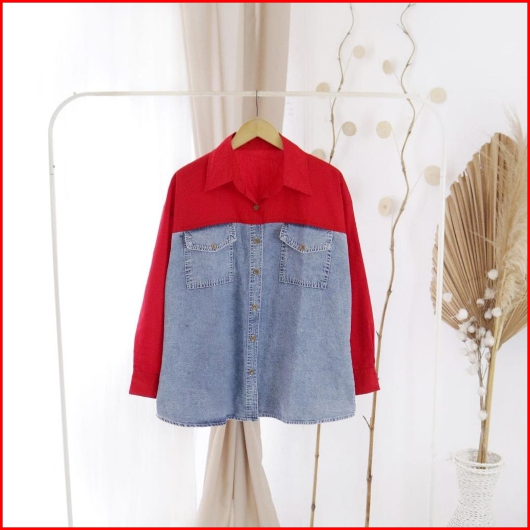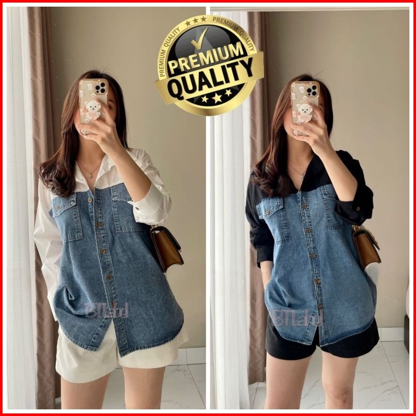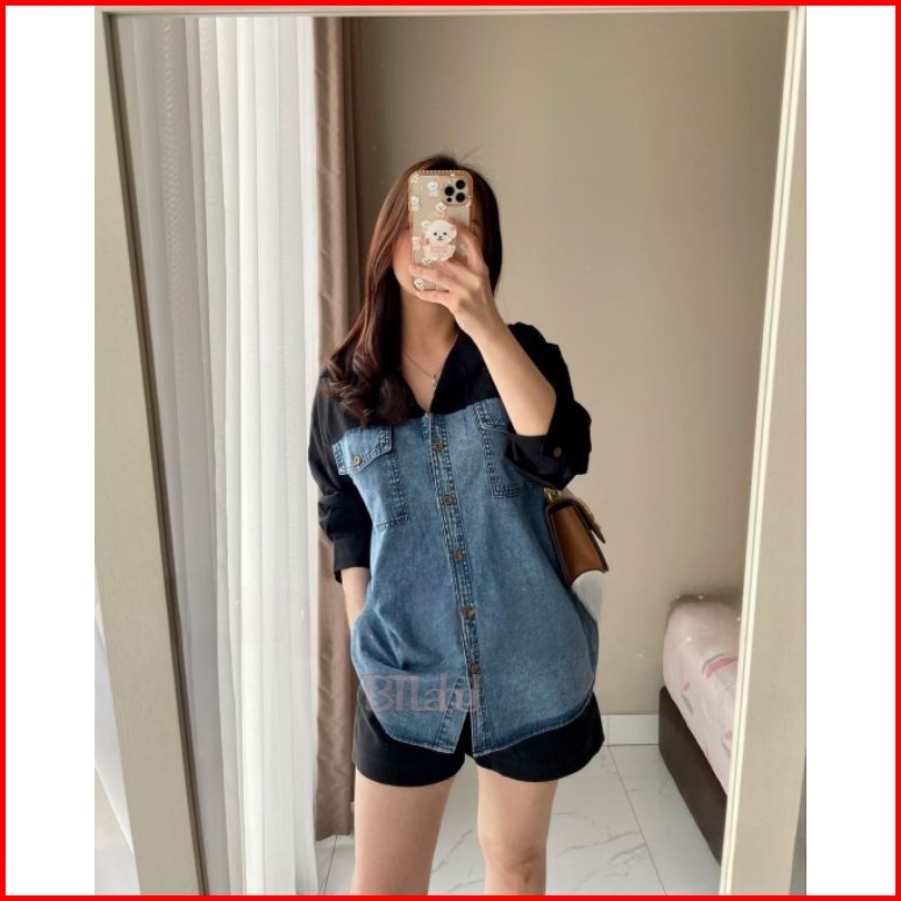 Btlabel - Blouse Lolly Denim Kombinasi Cottton Kemeja Wanita Kemeja Casual