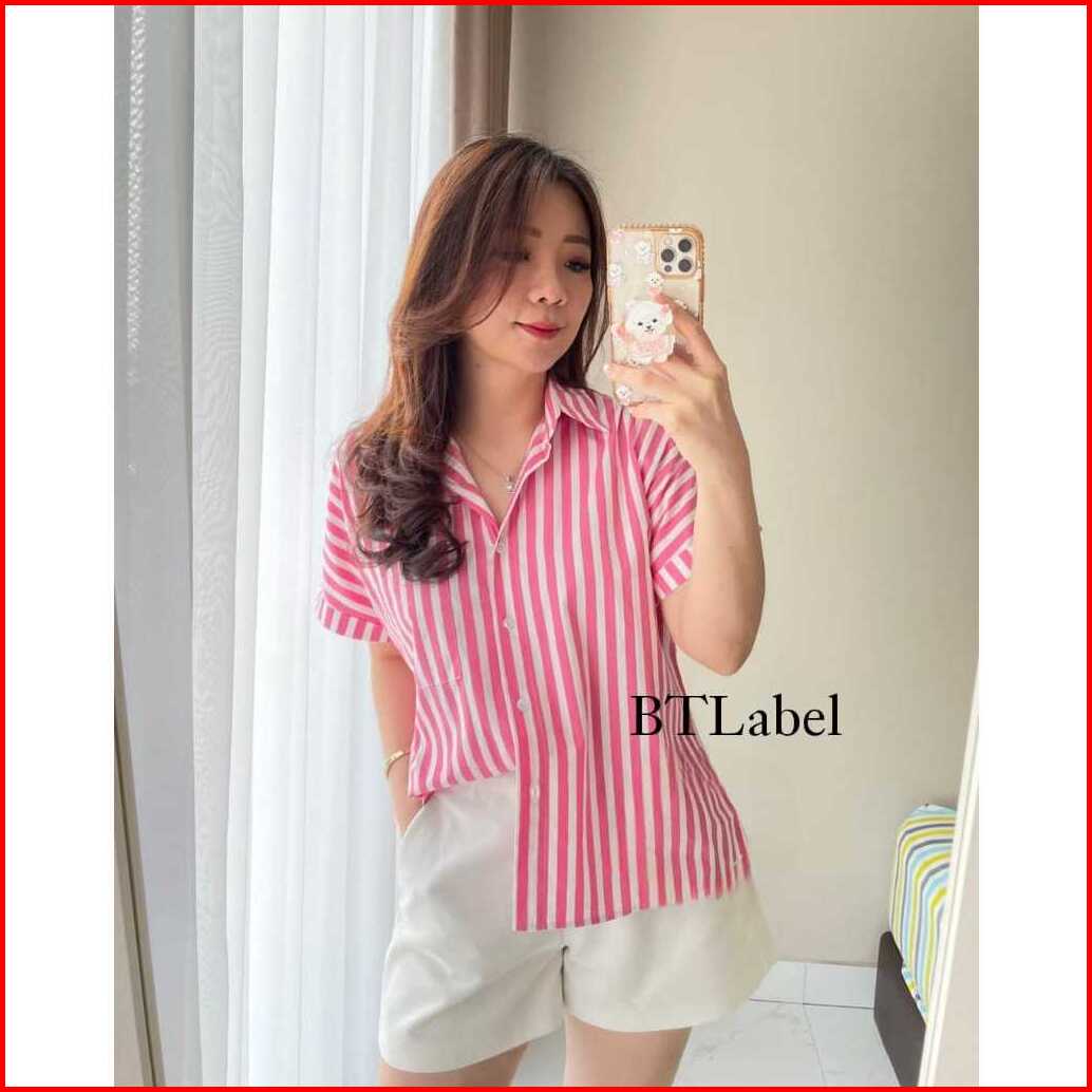 Btl Kemeja Salur Wanita Lengan Pendek Atasan Salur Premium