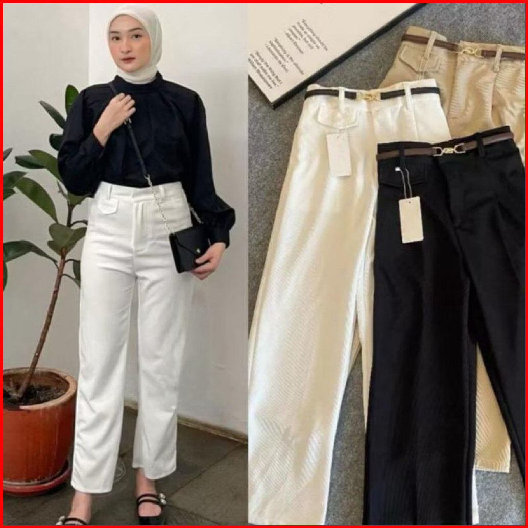 Celana Kulot Oro Pants Highwaist Loose Pants Trousers - Celana Kulot Wanita Knit Twill Drill Premium