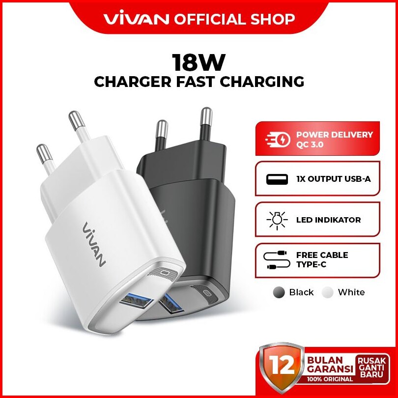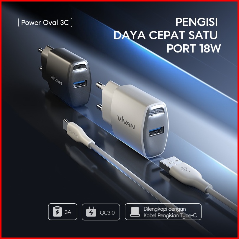 Vivan Charger Power Oval 3c 3l Fast Charging Free Type C Lightning - Garansi 12 Bulan