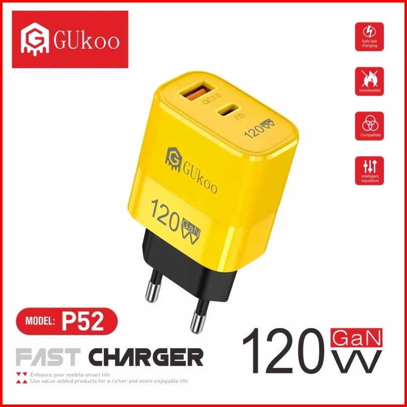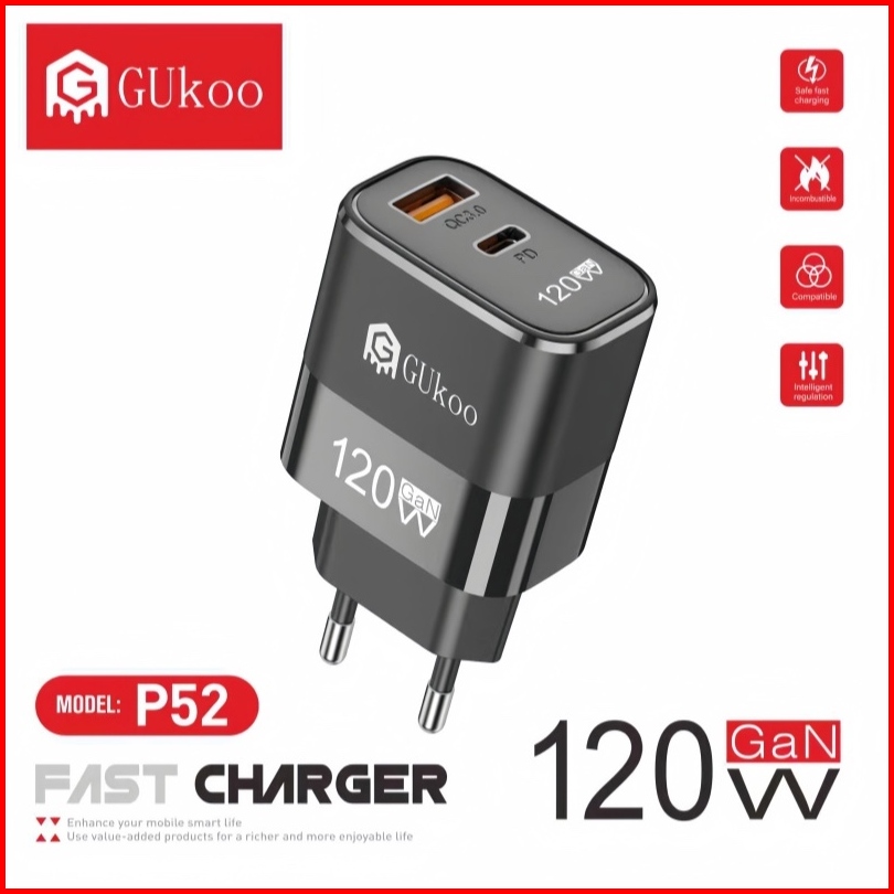 Gukoo Charger 120w Super Fast Charging Type C Usb - Untuk Hp Laptop - Pengisian Cepat Aman