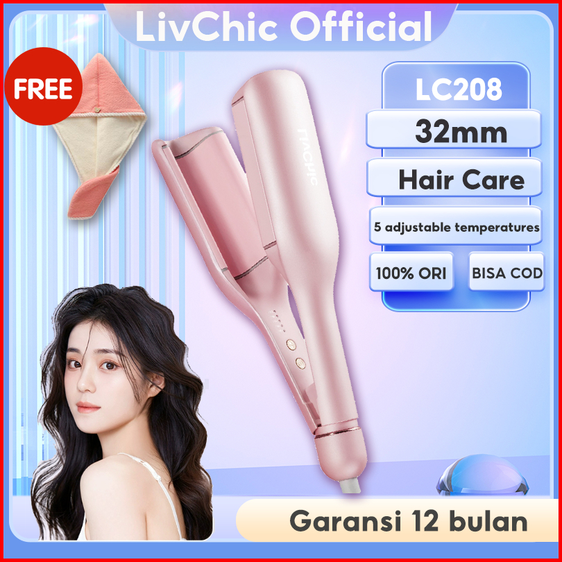 Livchic Lc208 Curly Catokan 32mm 120w Pelurus Rambut Ion Negatif Profesional Catokan Rambut