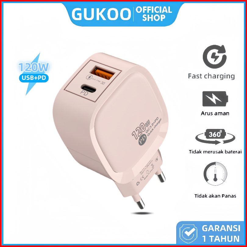 Gukoo Charger 120w Fast Charging Kuat Compact - Port Ganda Type C Usb - Cas 5 Hp Bersamaan Pengiriman Cepat Stok Terbata