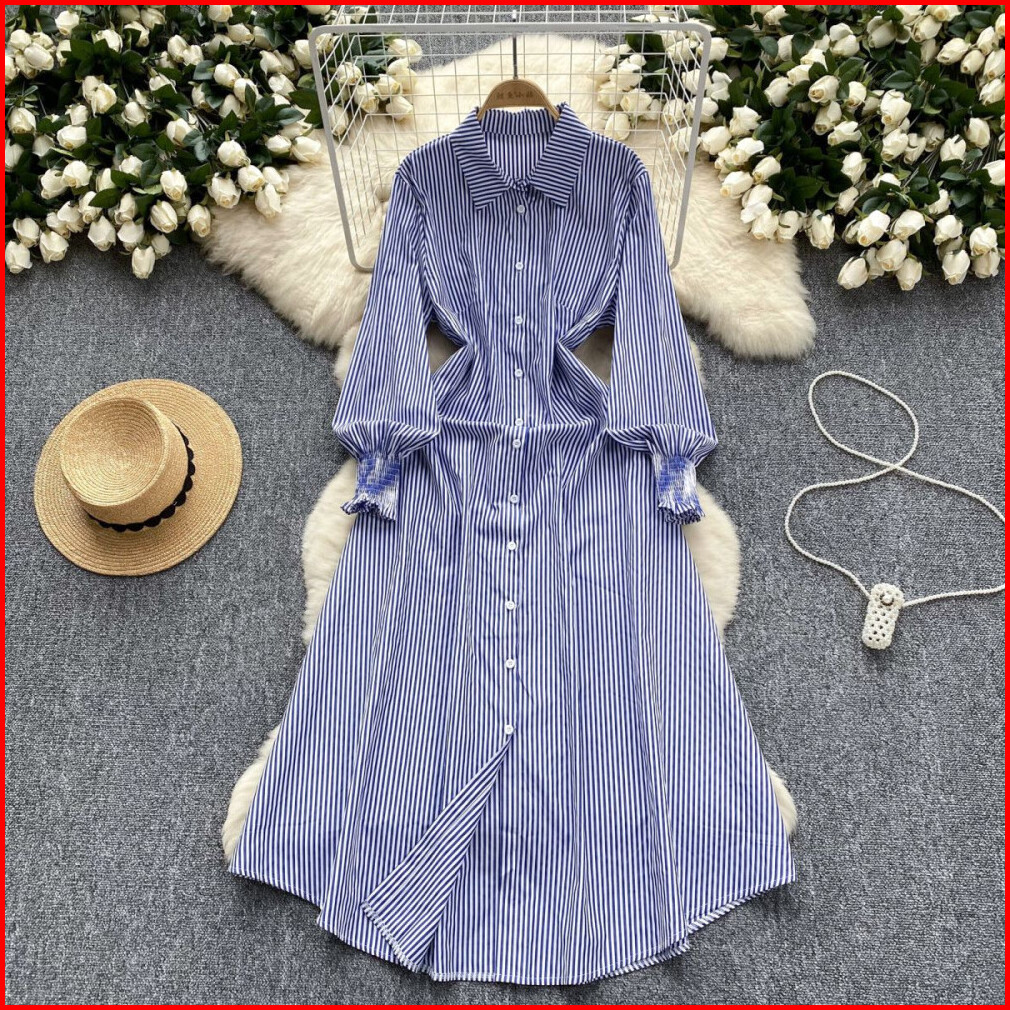 Dress Navy Bergaris Yang Stylish Original By Chicmore Gaun Kemeja Dan Elegan