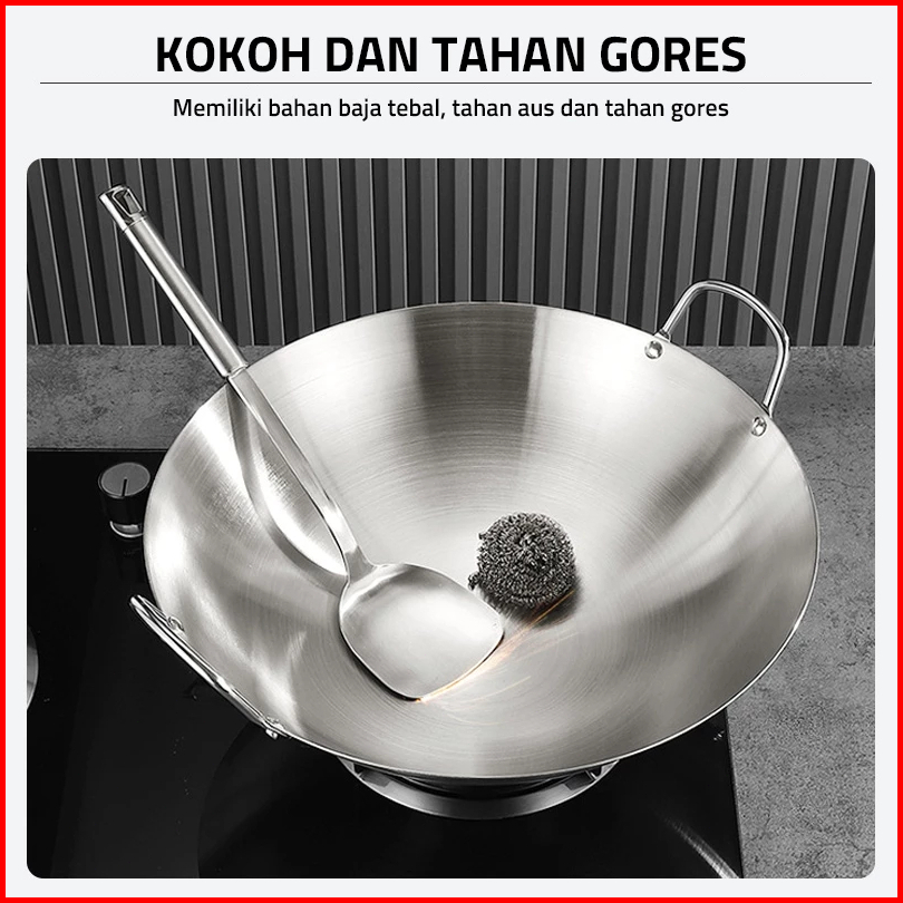 Veneco Wajan Stainless Gratis Spatula Tebal Kuali Anti Lengket Kuali Serbaguna Wokpan Premium Quality