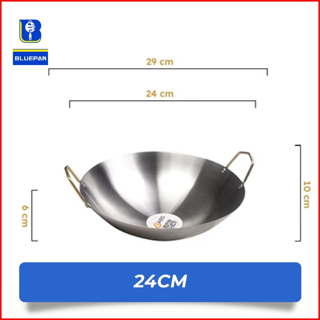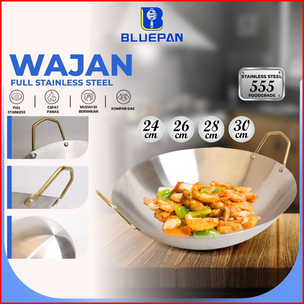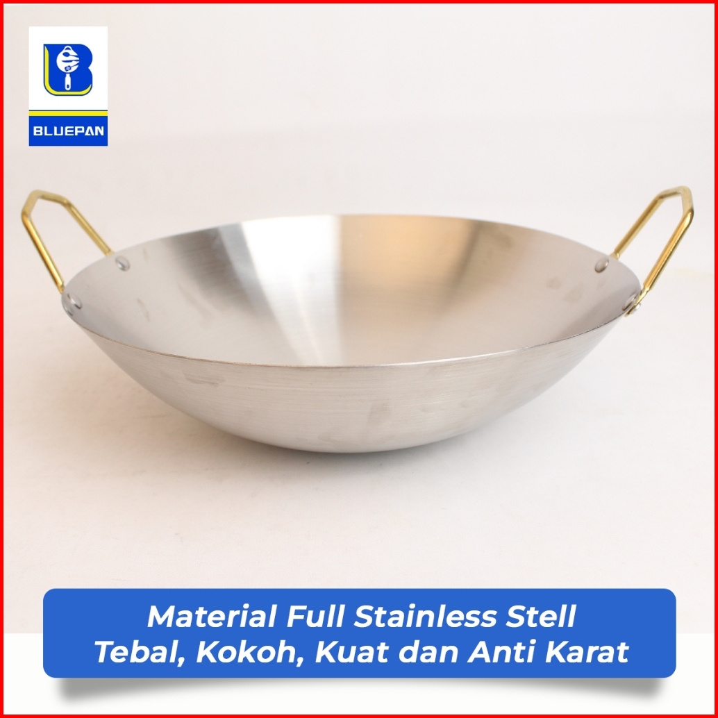 Bluepan Termurah Wajan Stainless Tebal Kuali Besar Premium Dengan Pegangan Stainless Steel Anti Lengket Wajan Premium