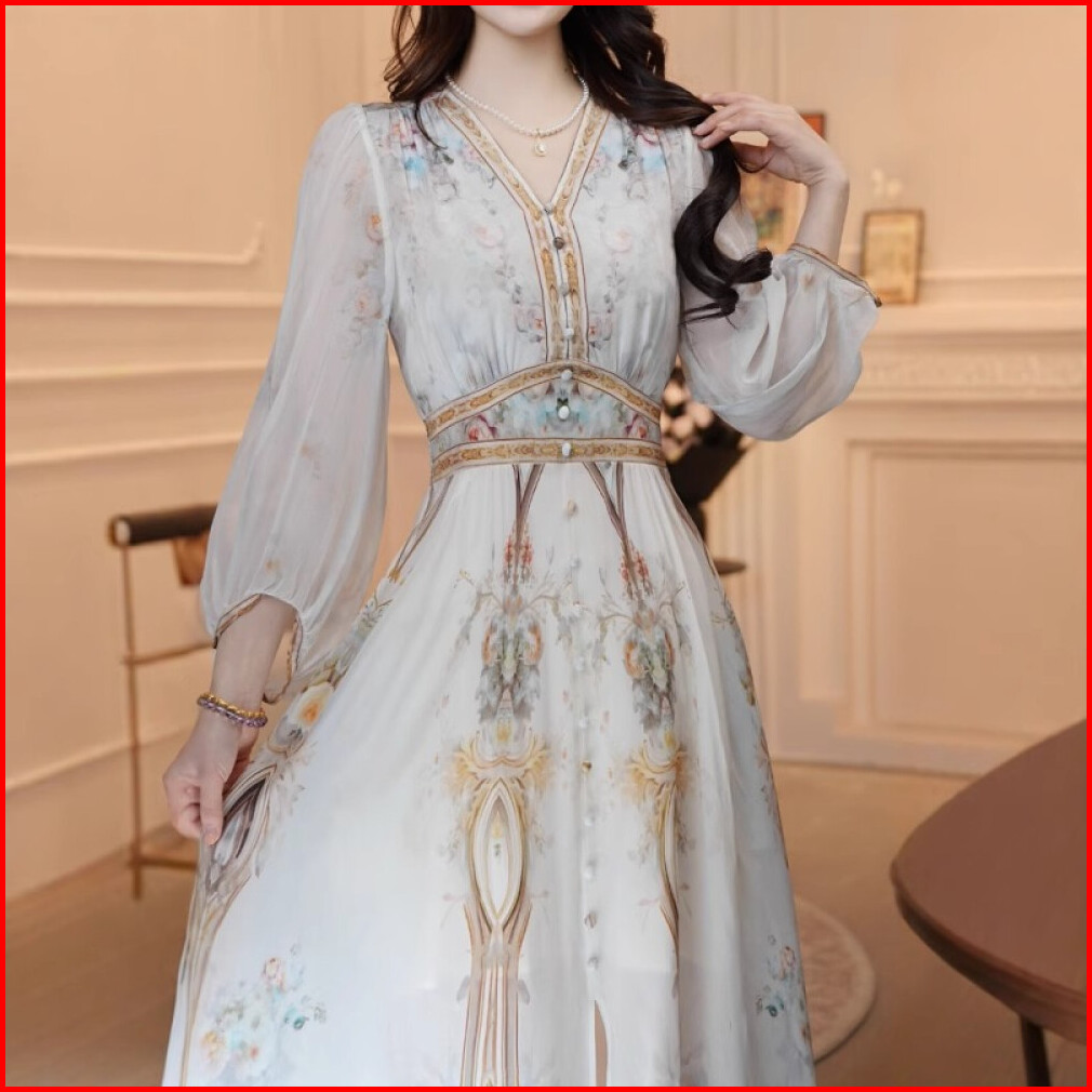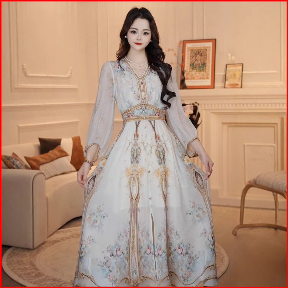 Ready Stockchicmore Gaun Wanita Lengan Panjang Gaya Mewah Kelas Atas Kerah V Elegan Bahan Satin Polyester Nyaman Warna H