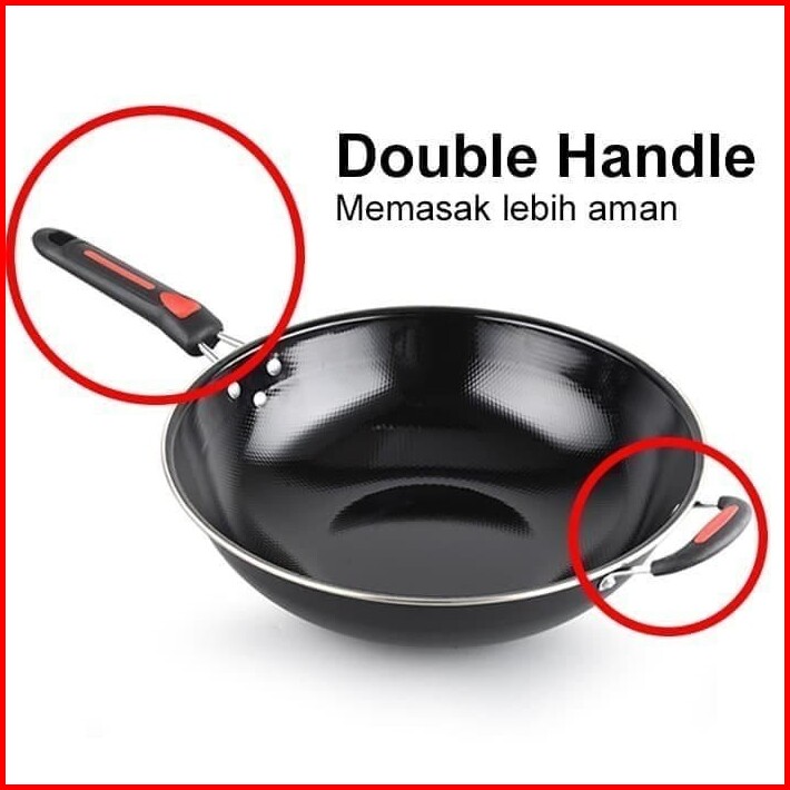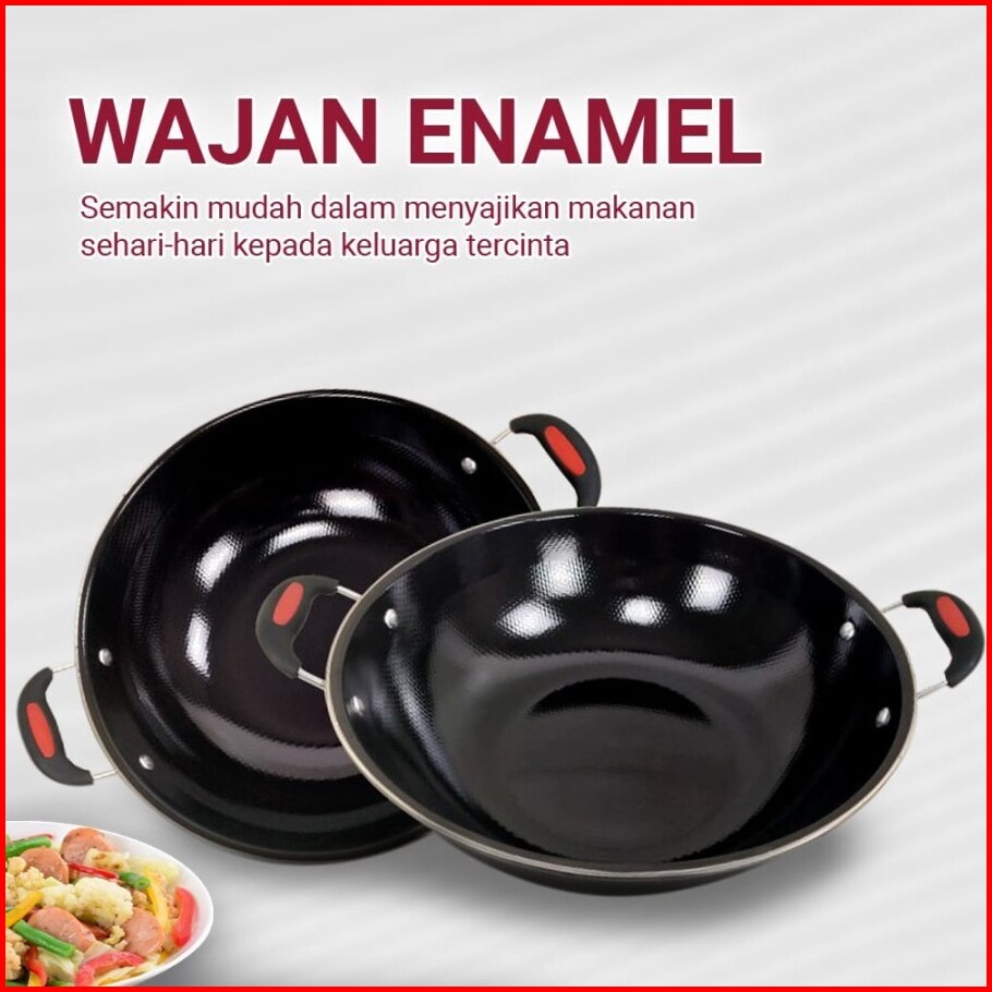 Wajan Enamel Panci Hitam Kuping Gagang Panjang Wajan Anti Lengket Anti Gores 36cm