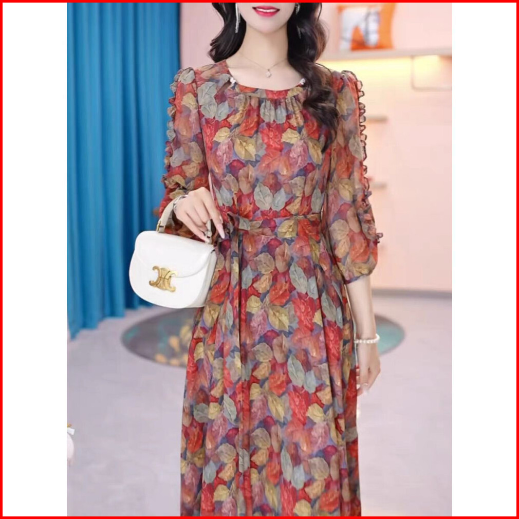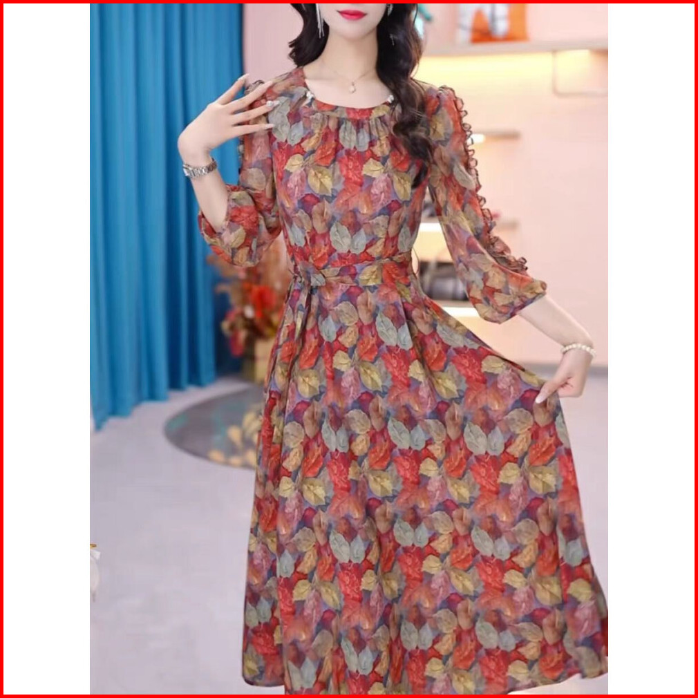 Gaun Rok Elegan Motif Bunga Original By Chicmore.freshness Pinggang Ramping Dengan Lengan Panjang Dan Terdapat Variasi T