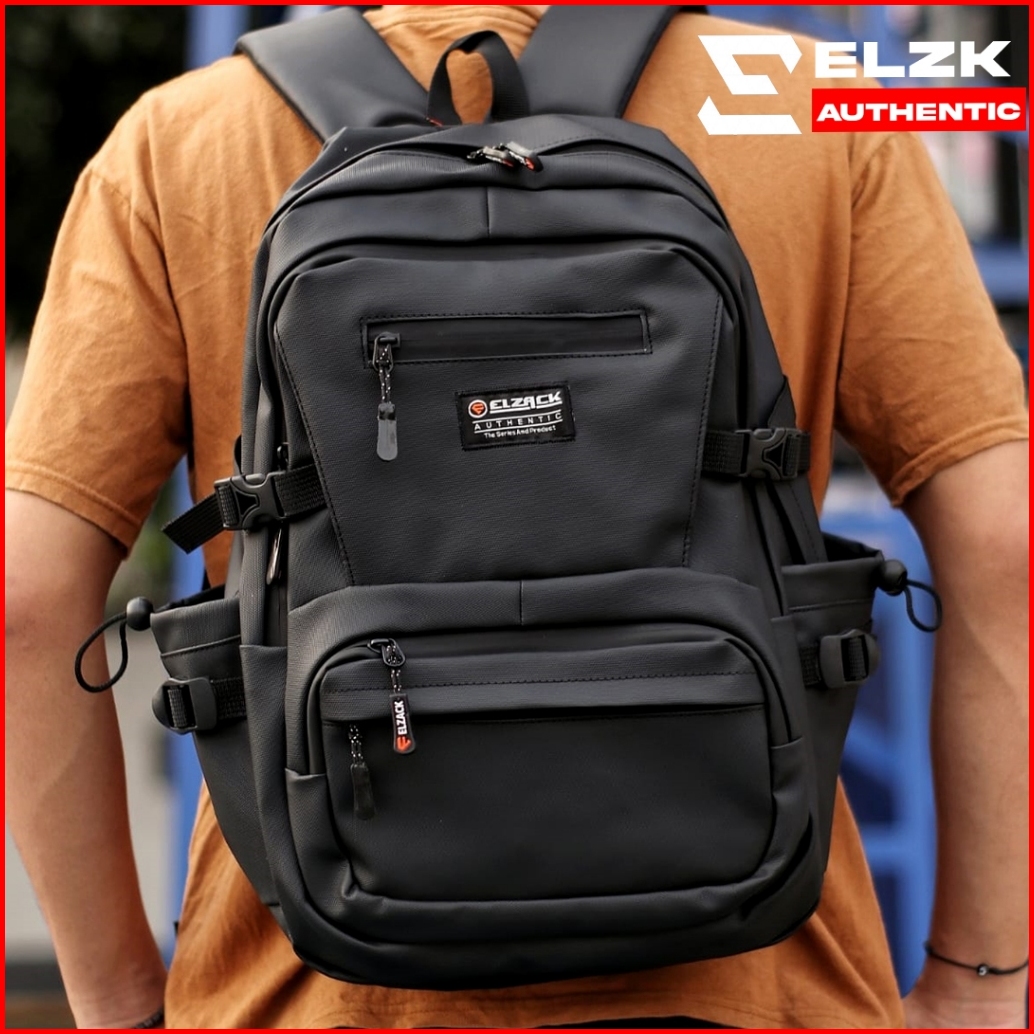 Elzck Hubner Tas Ransel Pria Hitam Backpack Tas Kerja Kuliah Sekoah Trendy Original