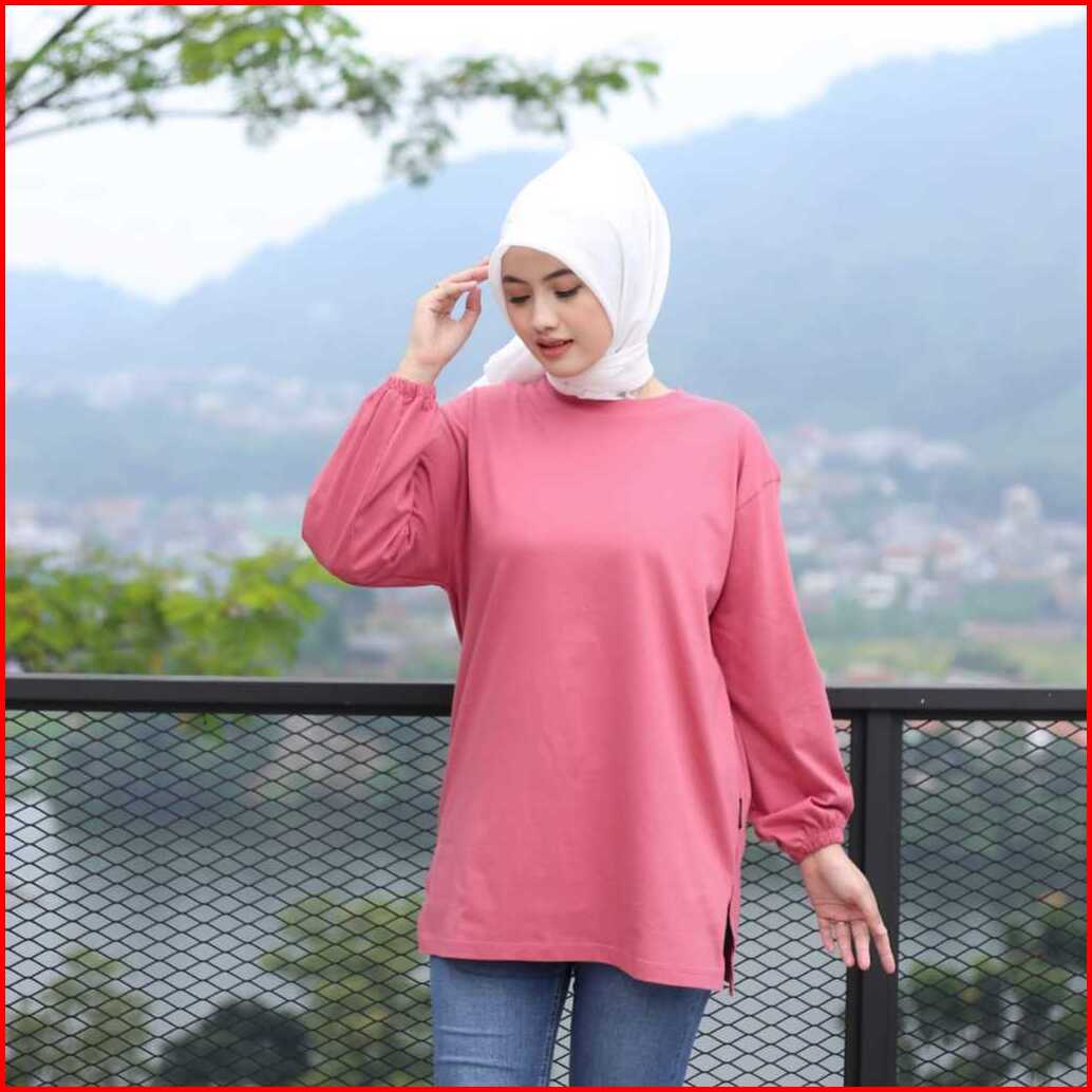 Forever Cloth Kaos Polos Lengan Panjang Kerut Wanita Bahan Cotton Combed 24s Hijab Style