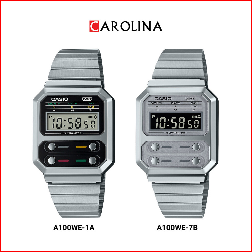 Jam Tangan Casio General A100we-1a Digital Dial Stainless Steel Band