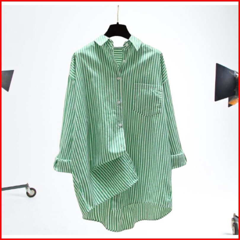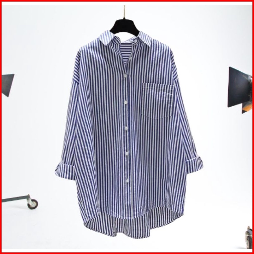 Kemeja Salur Wanita Kemeja Saku Baju Atasan Remaja Dewasa Outfit Kekinian Kemeja Terlaris
