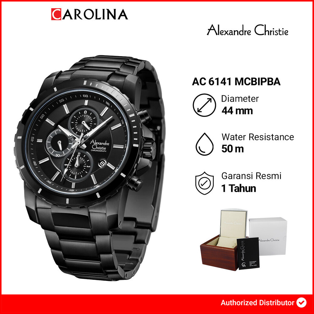 Jam Tangan Pria Alexandre Christie Chronograph Ac 6141 Mcbipba Black Dial Black Stainless Steel Strap