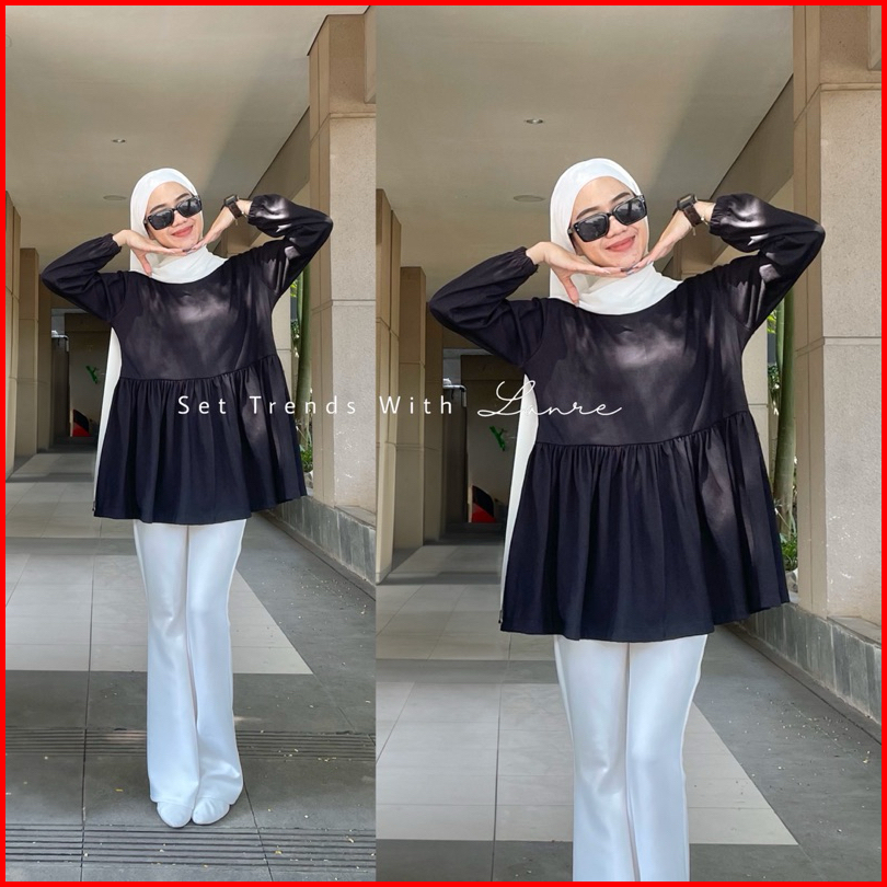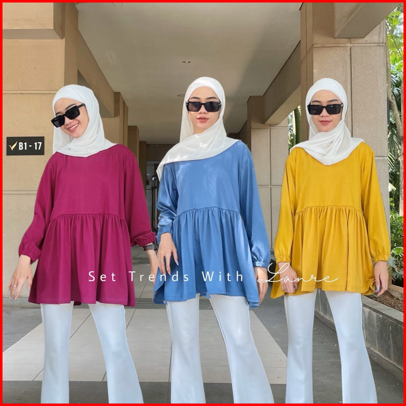 Moa Blouse Model Peplum Rempel Bahan Kaos Atasan Basic Untuk Busui Long Sleeve Ruffle Lengan Panjang Cotton Combed