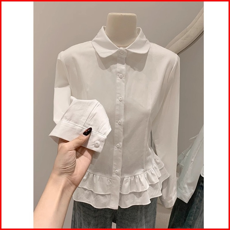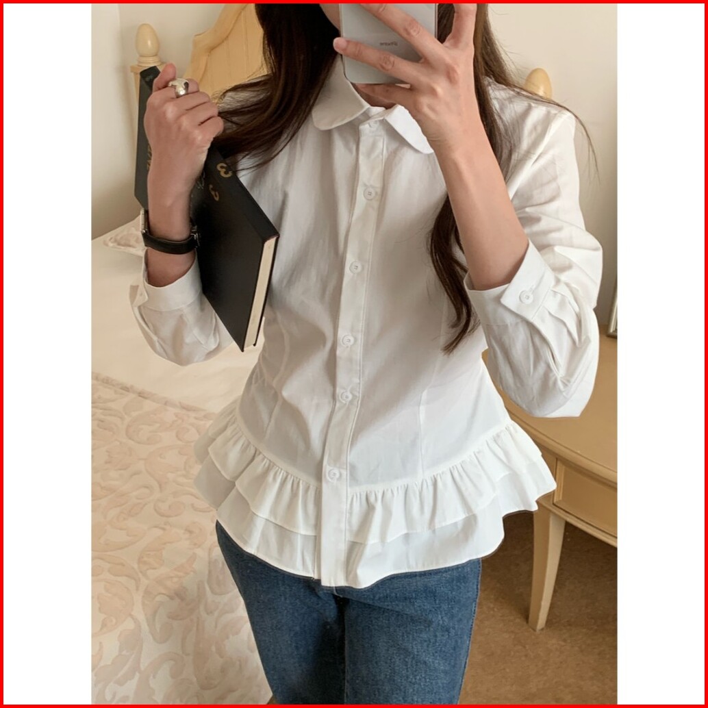 The Monseur Gallery Kemeja Bergaris Lengan Panjang Vintage Wanita Atasan Kemeja Berkerut