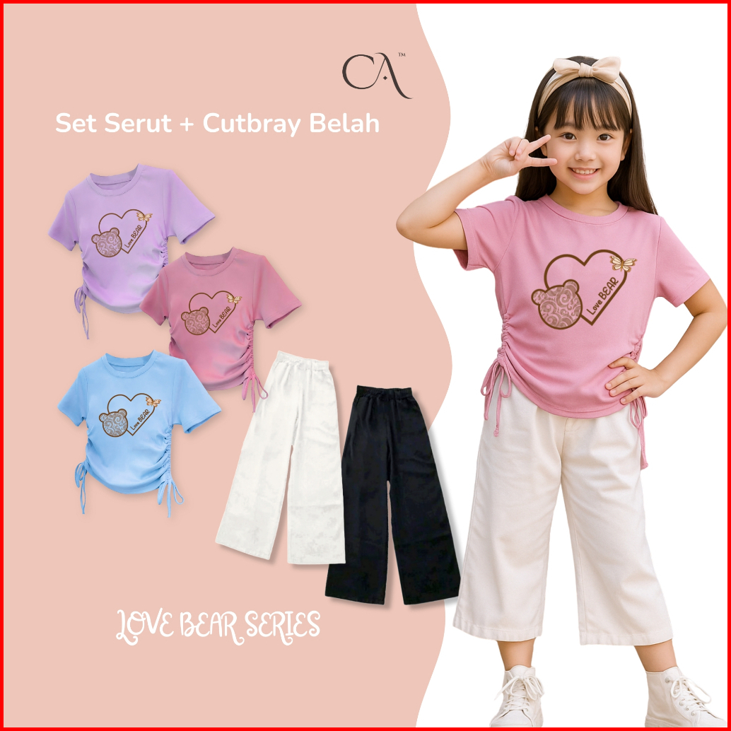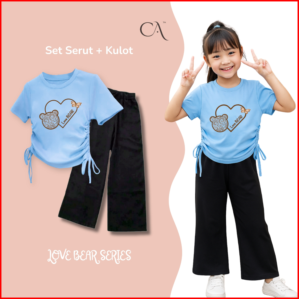 Setelan Kaos Serut Crop Top Dan Kulot Anak Perempuan Love Bear Umur 1-14 Tahun Part 2