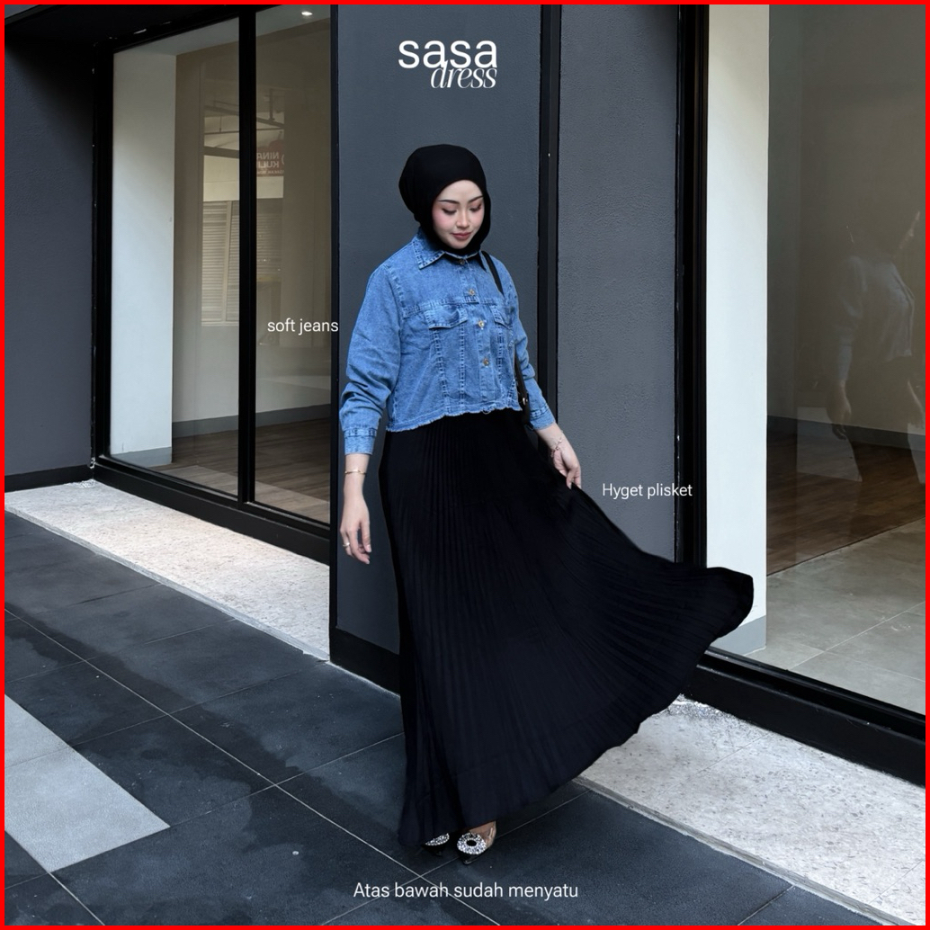 Sasa Dress Plisket Jeans By Lanre Muslimah Casual Elegan