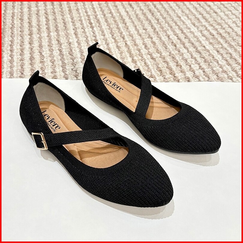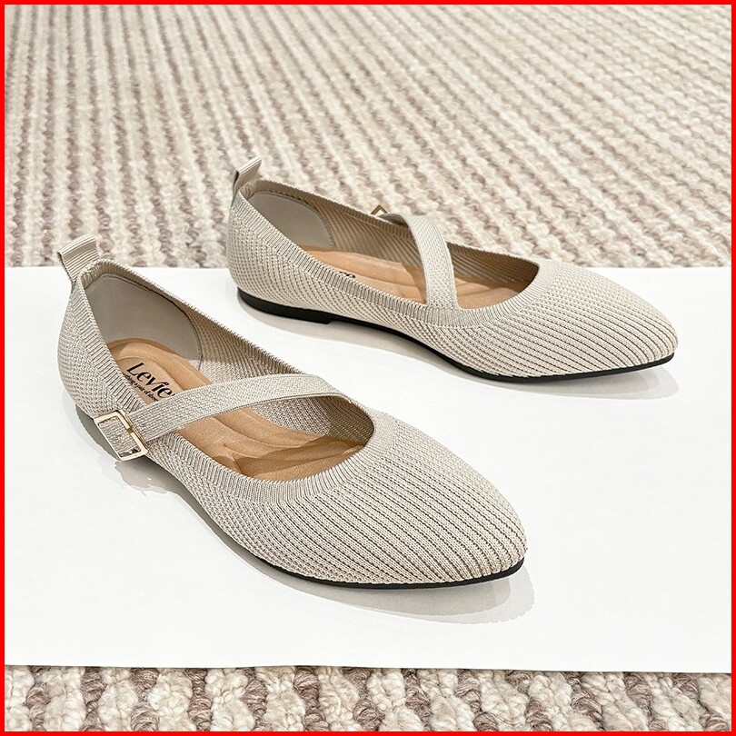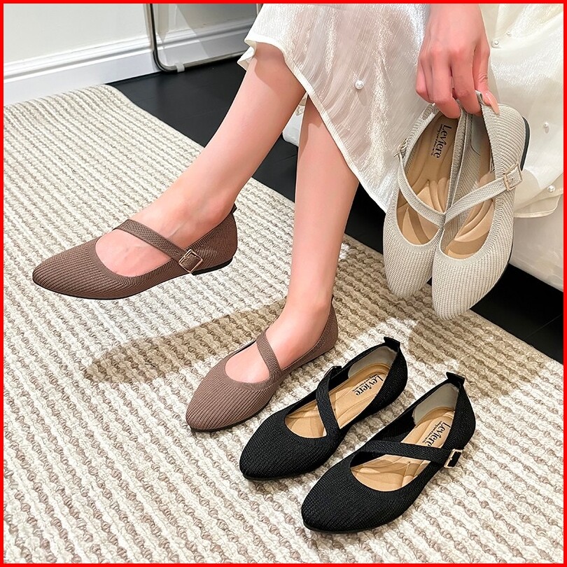 Lvr Bomi Free Box Flatshoes Wanita Motif Tali Mary Jane Flats Knit Kekinian Tg2157