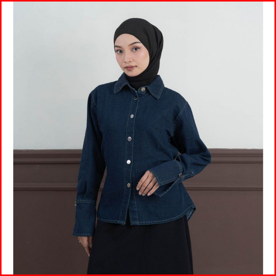 Orvea Julia Blouse Top Fitted Denim Premium L Blouse Denim Wanita Fit Body Modest Casual Look