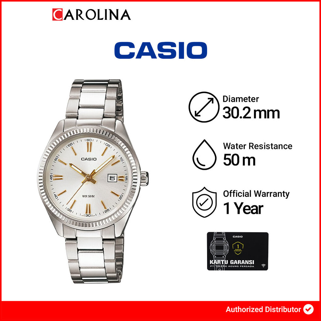 Jam Tangan Wanita Casio General Ltp-1302d-7a2 Enticer White Dial Stainless Steel Band