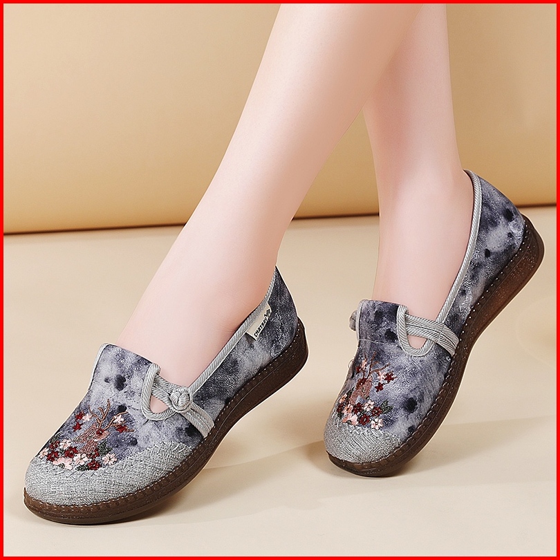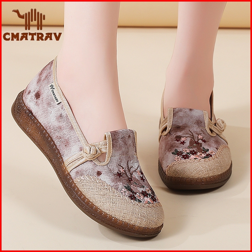 Cmatrav Sepatu Flat Wanita Dengan Sulaman Santai Sol Karet Nyaman Dan Praktis Slip-on Untuk Jalan-jalan Dan Aktivitas Se