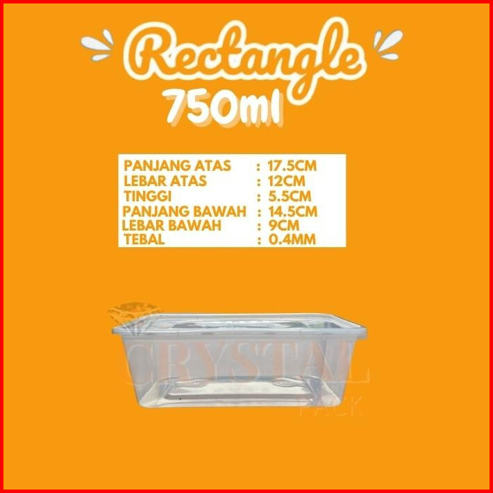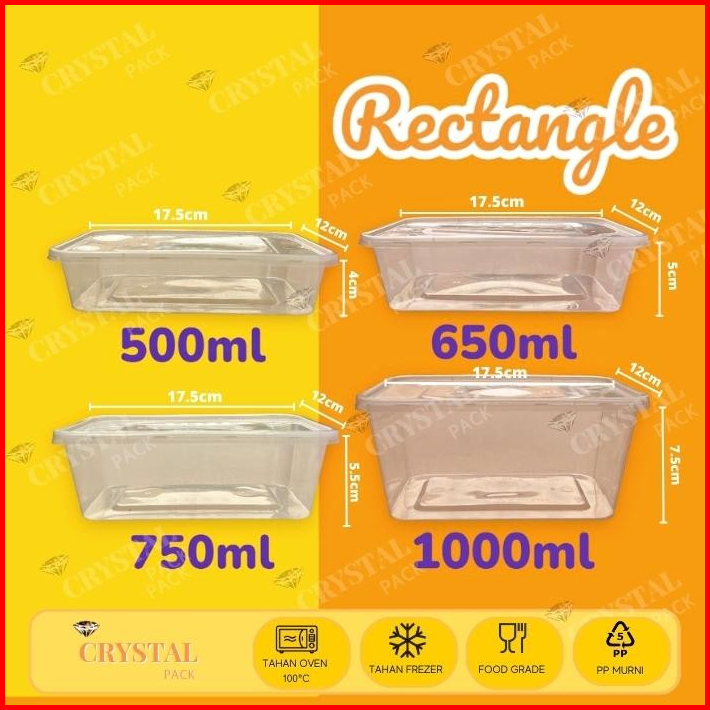 Thinwall Rectangle 500ml 650ml 750ml 1000ml Pack 25pcs Kotak Makan Plastik Persegi Panjang