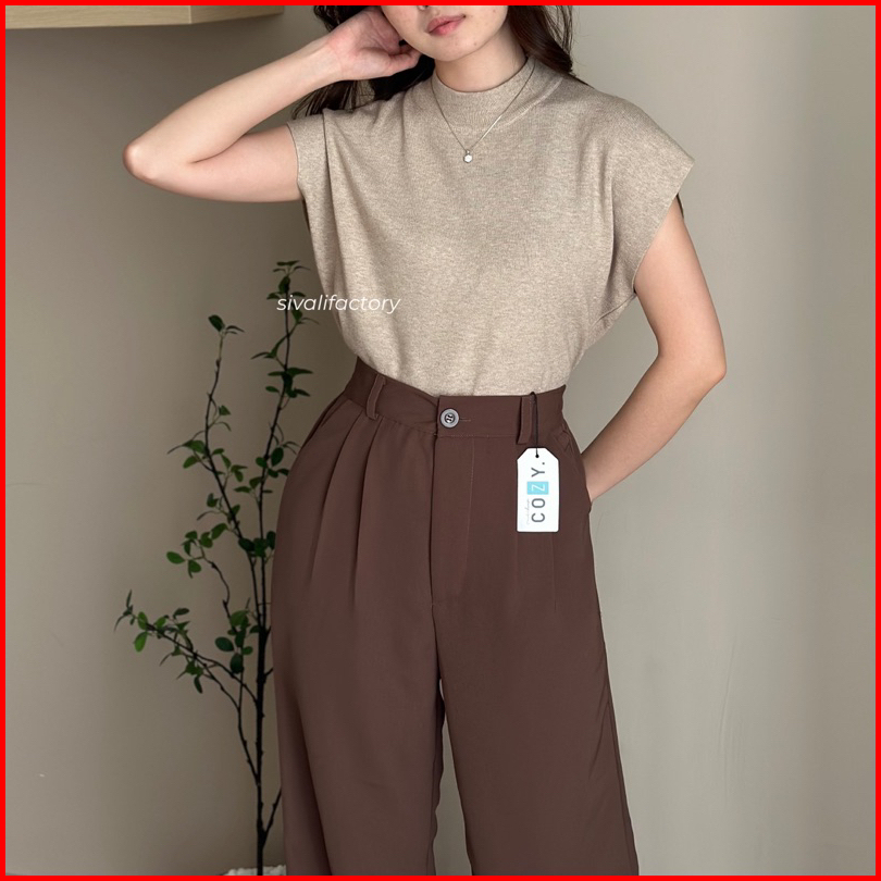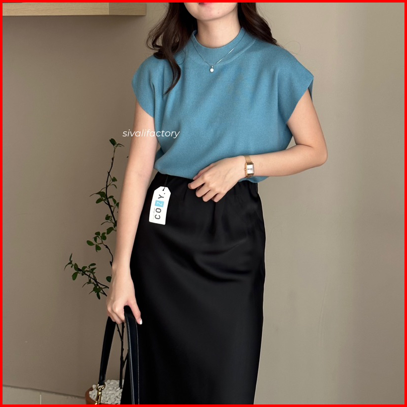 Sivali Eunji Knit Top - Baju Wanita Vest Turtleneck Rajut Tanpa Lengan Import Inner Hijab - Atasan Wanita