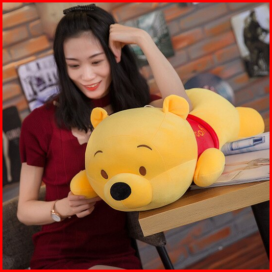 Boneka Beruang Winnie The Pooh Lying Mainan Bantal Tidur Bahan Halus Hadiah Ulang Tahun Ukuran 45cm