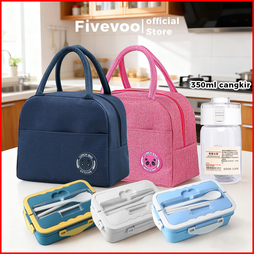 Fivevoo Set Bekal Set Lunch Box Dan Lunch Bag Set Alat Makan Paket Kotak Bekal Dan Tas Bekal