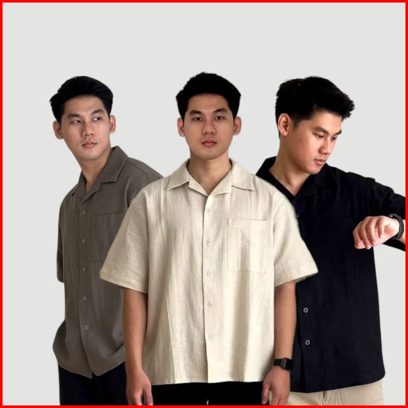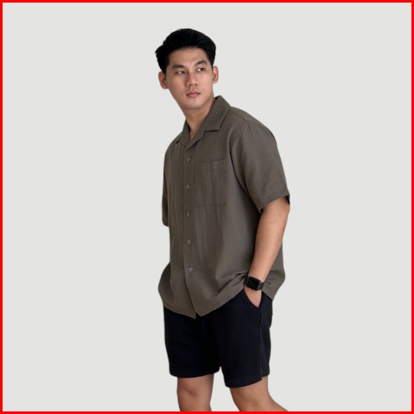 Frammassi Cuban Bowling Boxy Oversized Linen Shirt Kemeja Linen Bowling Polos Pria Kerah Terbuka Lengan Pendek 81