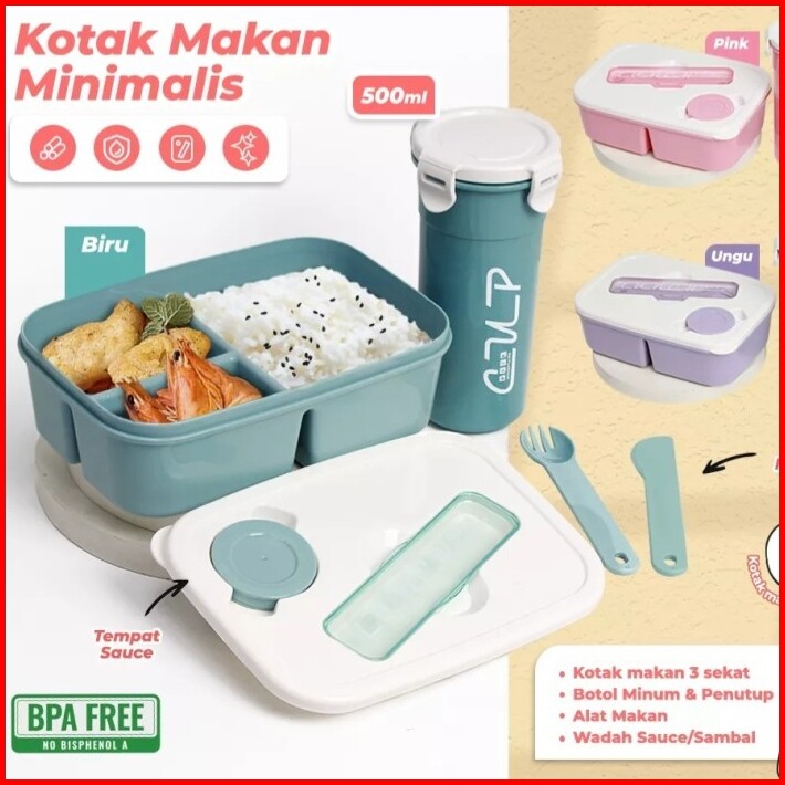 Kotak Makan Botol Set Tempat Makan Portable Dan Botol Minum Lunch Box Bpa Free 1set Kotak Makan Botol