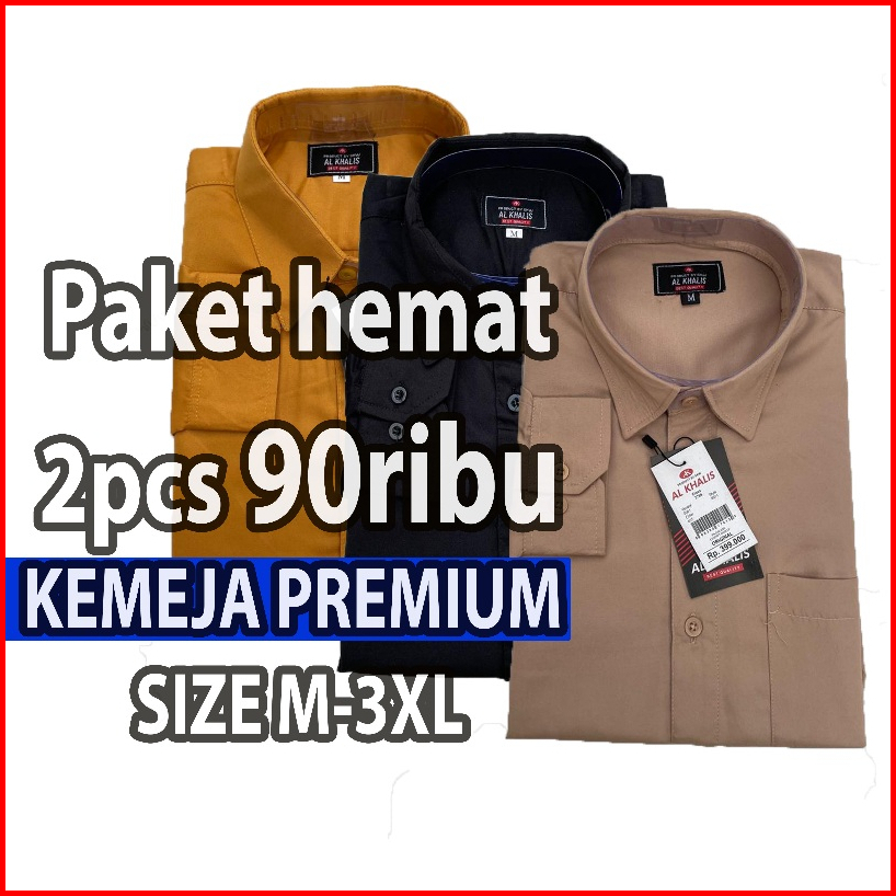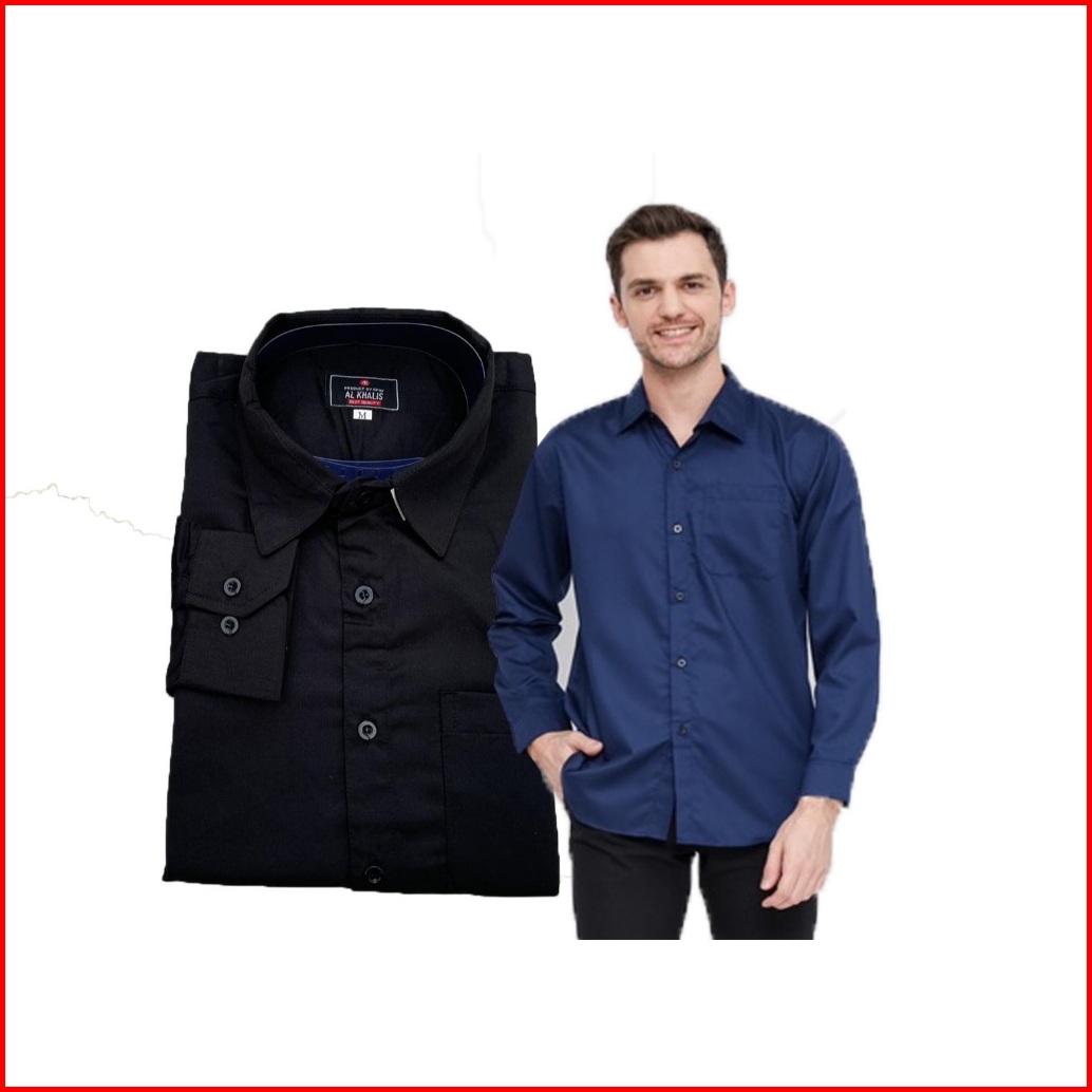 Paket 2 Pcs Cuma 90ribu Kemeja Pria Premium Polos Lengan Panjang Baju Kerja Slimfit Hitam Putih Katun Toyobo