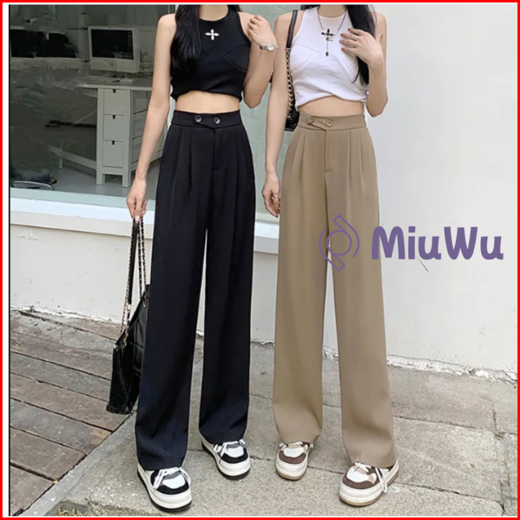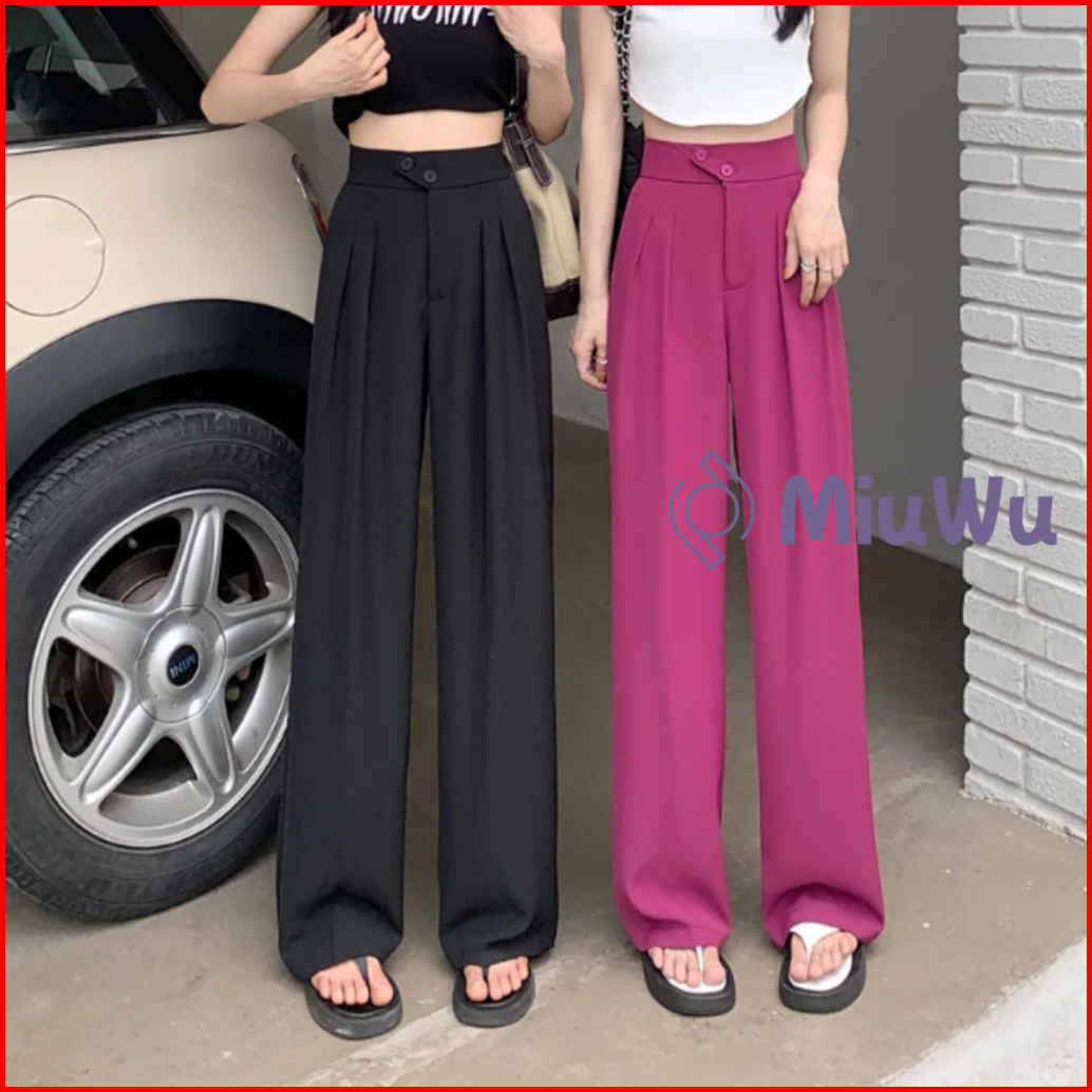 Miuwu - Pants Kulot Celana Kancing Hw Cullote Pants Highwaist Wanita Kulot Karet H987