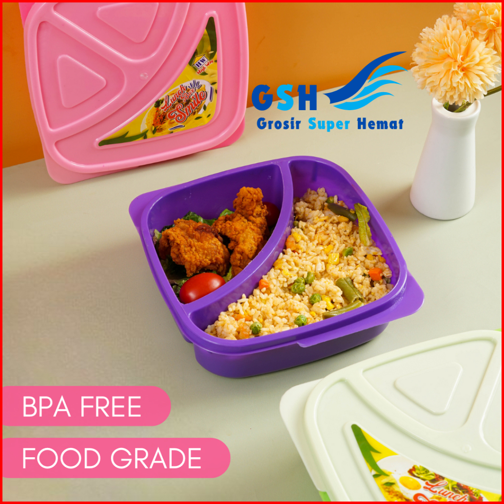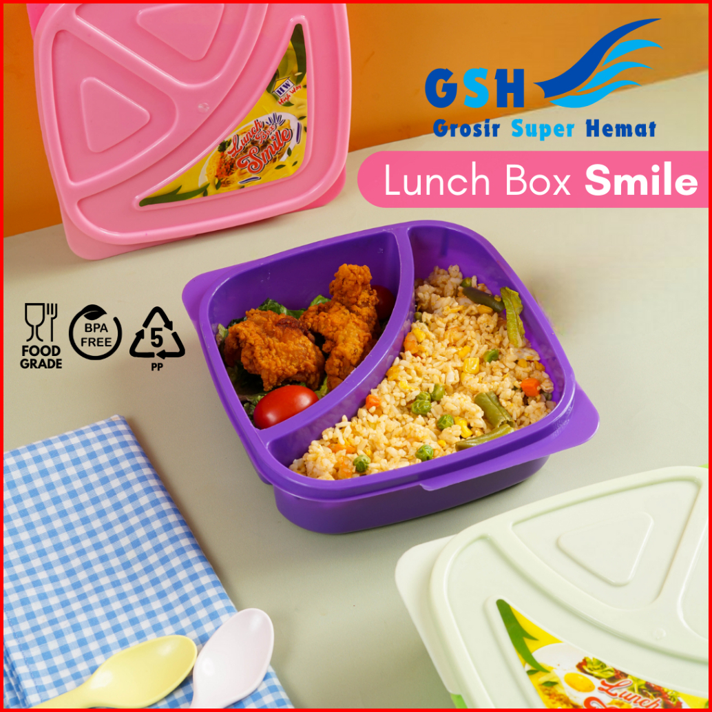 Gsh - Lunch Box Smile 2 Sekat High Way Kotak Makan Anti Tumpah Lunch Box Anak Tk Sekolah Tempat Bekal Catering Kantoran