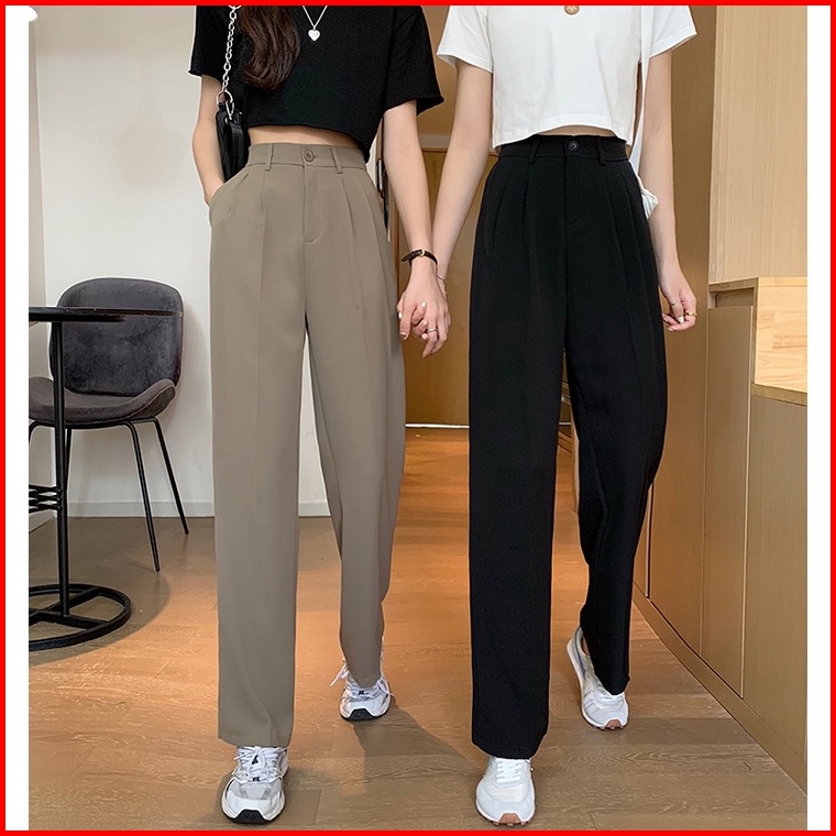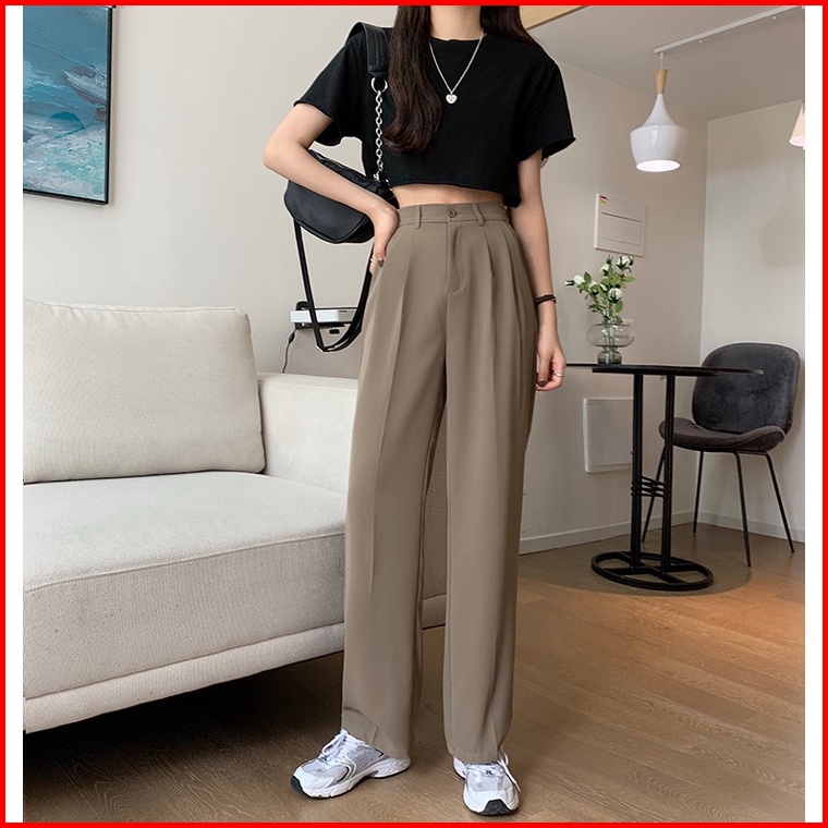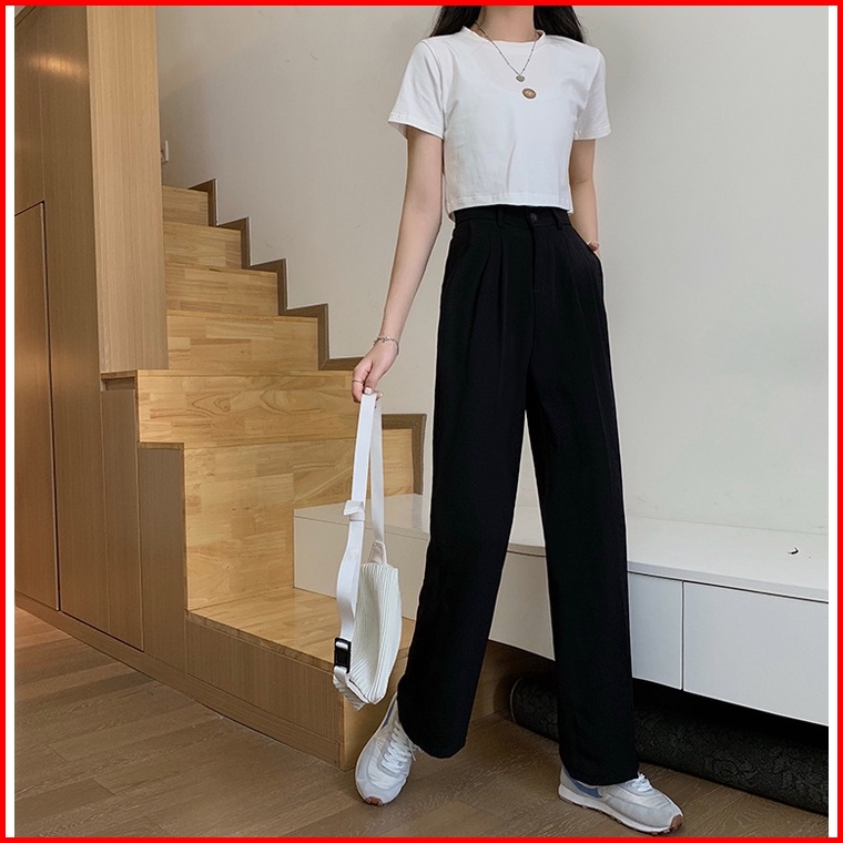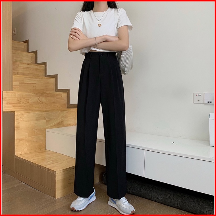 Ms Celana Panjang Wanita Korean Fashion High Waist Kulot Elastic Straight Leg Pants Women Wanita