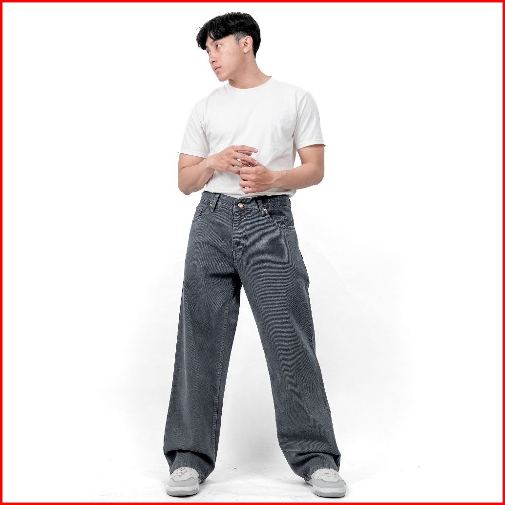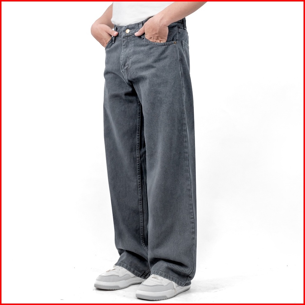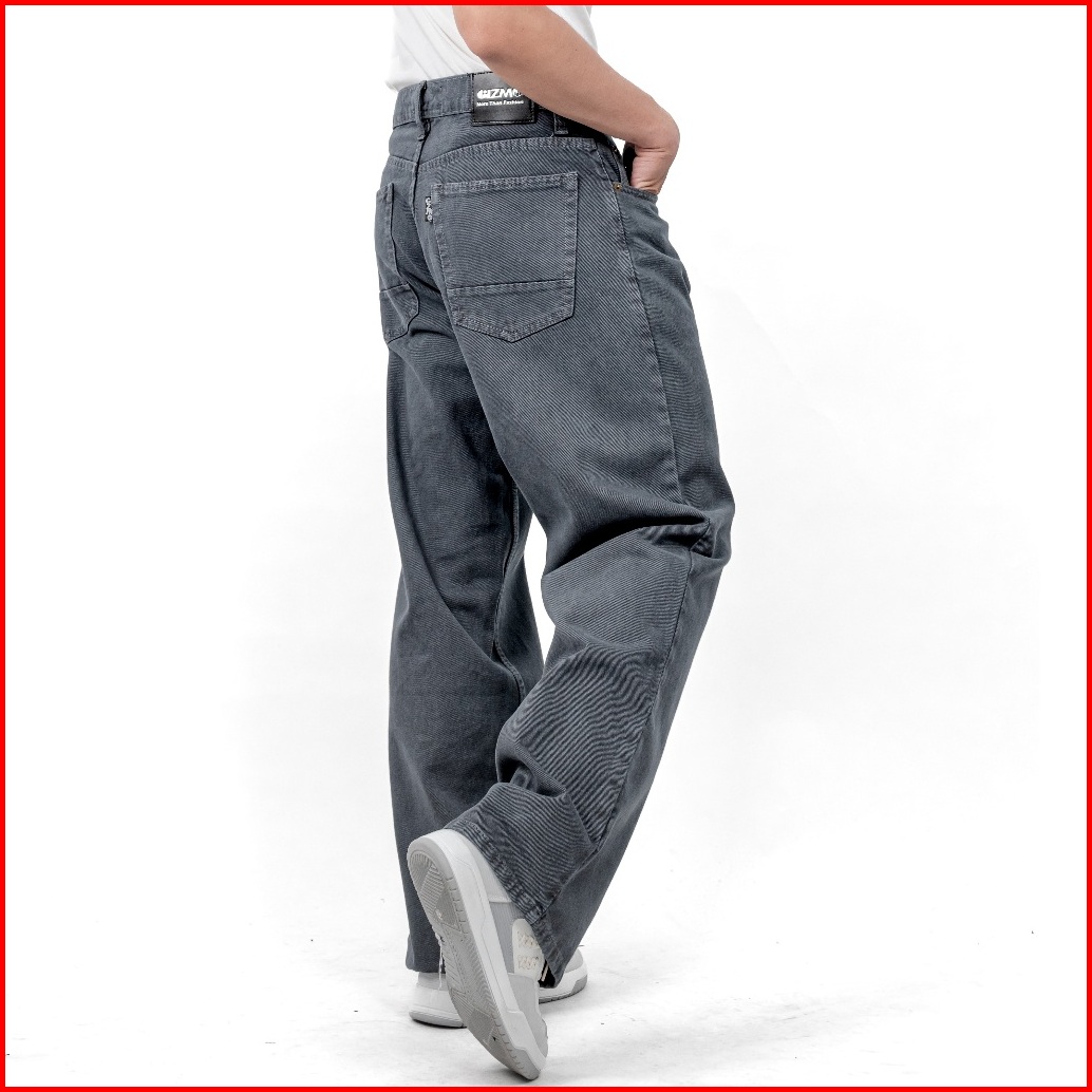 Gizmo - Celana Jeans Wide Leg Wisker Lebar Gombrong Skena Grey Retro Pria Loose Fit Jumbo Big Keren Bahan Denim