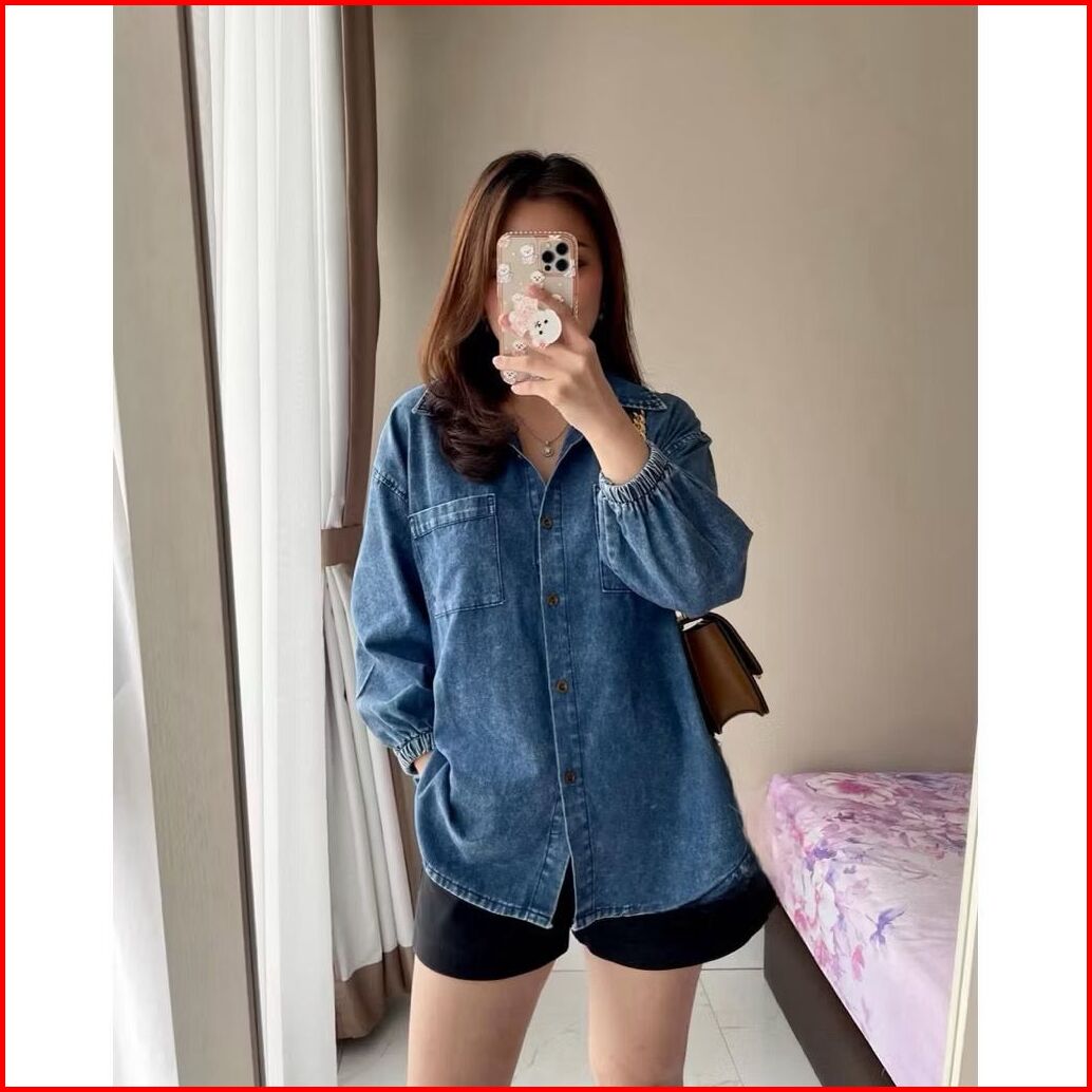 Btl Kemeja Denim Lengan 7 8 Kemeja Wanita Kemeja Santai Wanita
