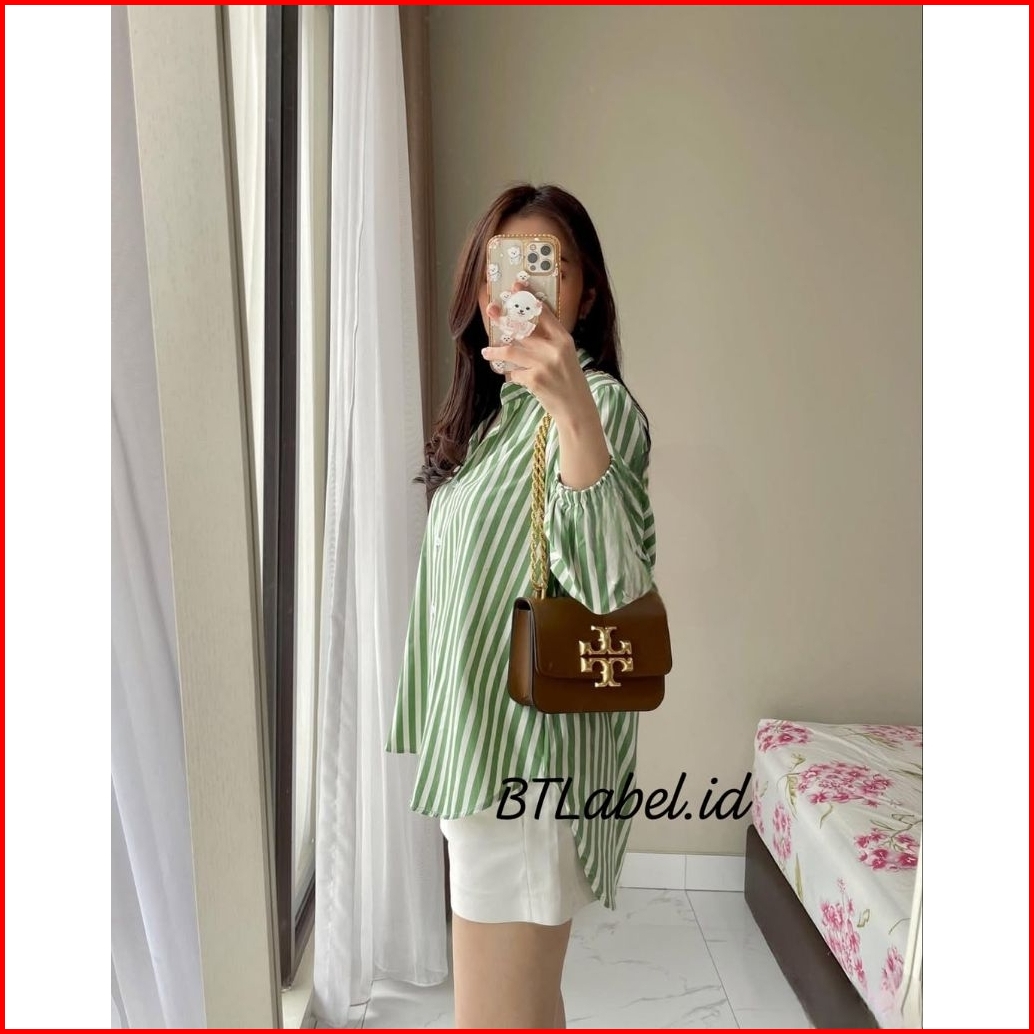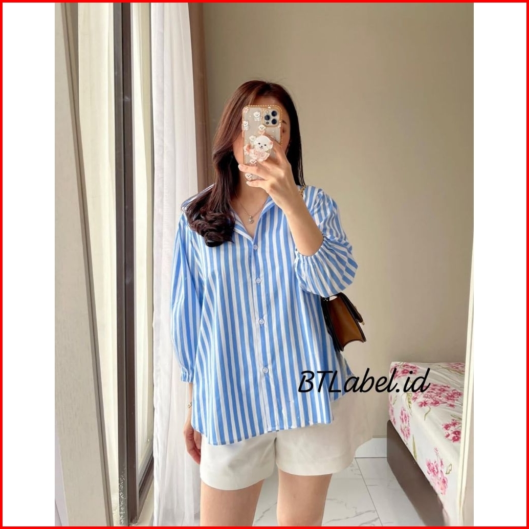 Btl Kemeja Salur Candy Premium Lengan 7 8 Atasan Casual Wanita