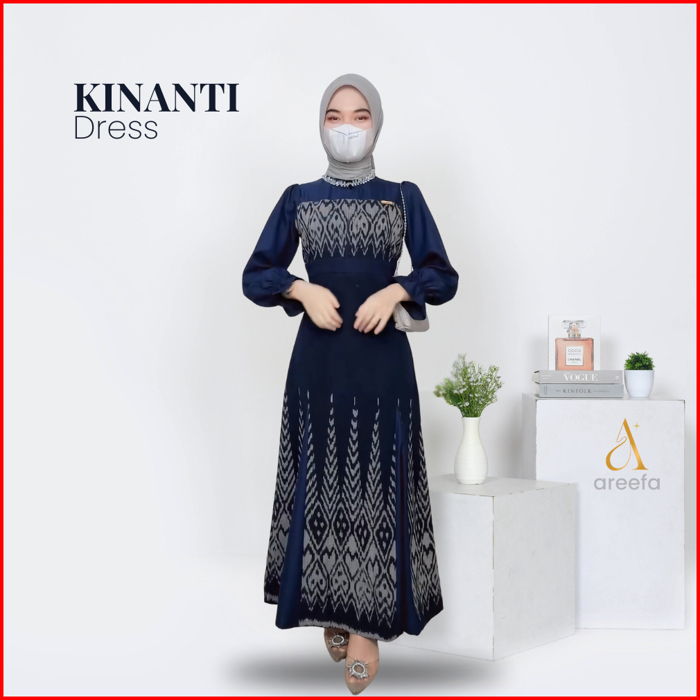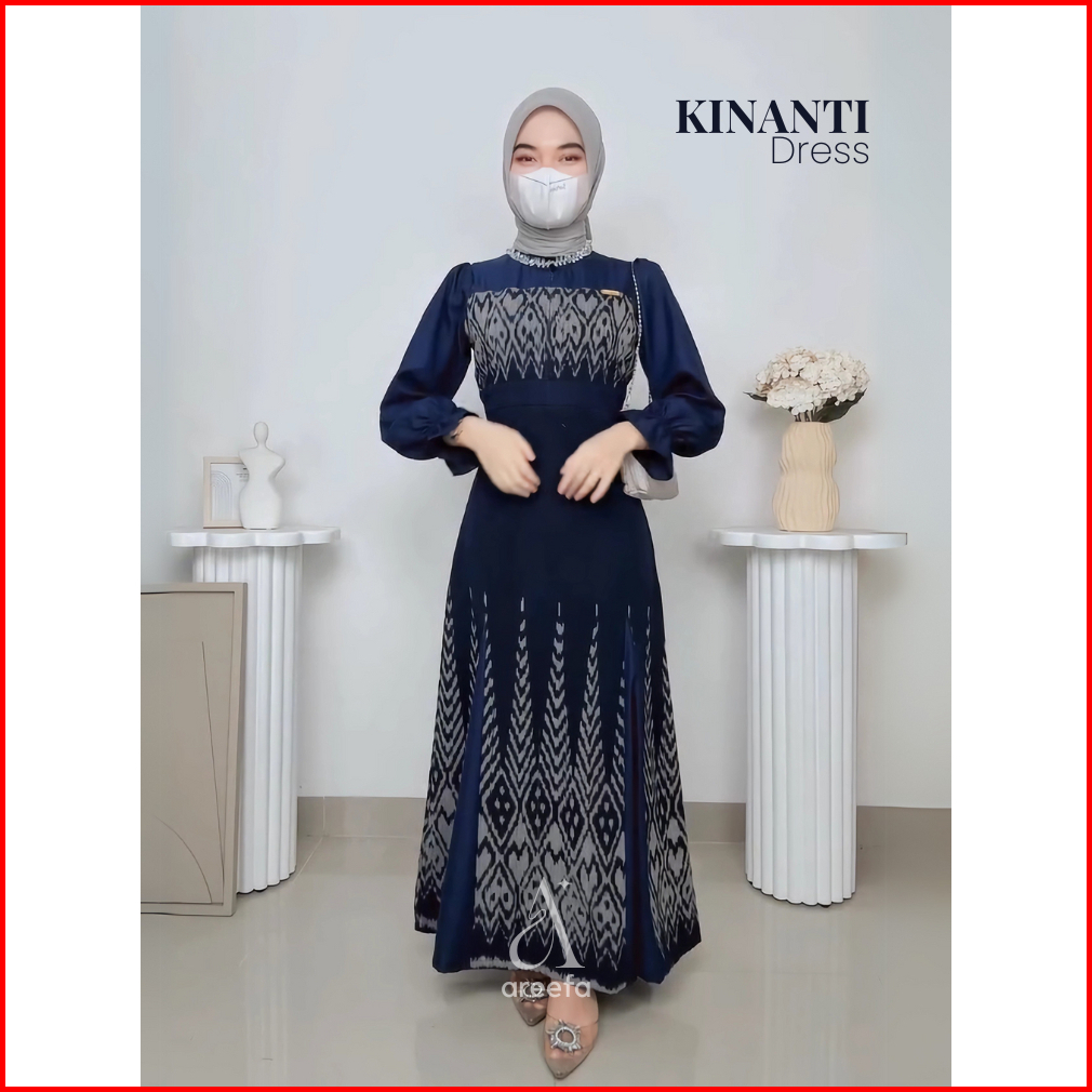 Areefa - Kinanti Gamis Dress Etnik Tenun Premium Pesta Mewah Wanita Remaja Kondangan Navy Busui