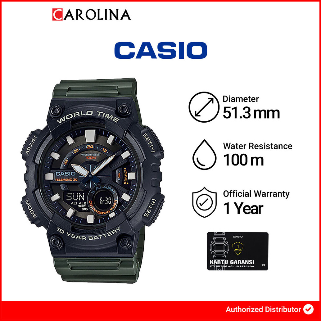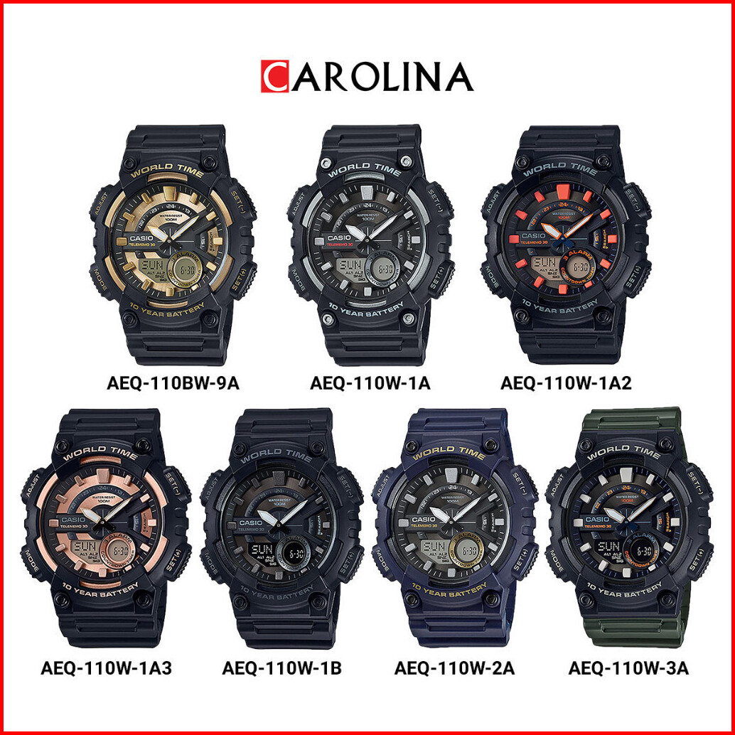 Jam Tangan Pria Casio Aeq-110w-3a Analog Digital Dial Black Resin Band