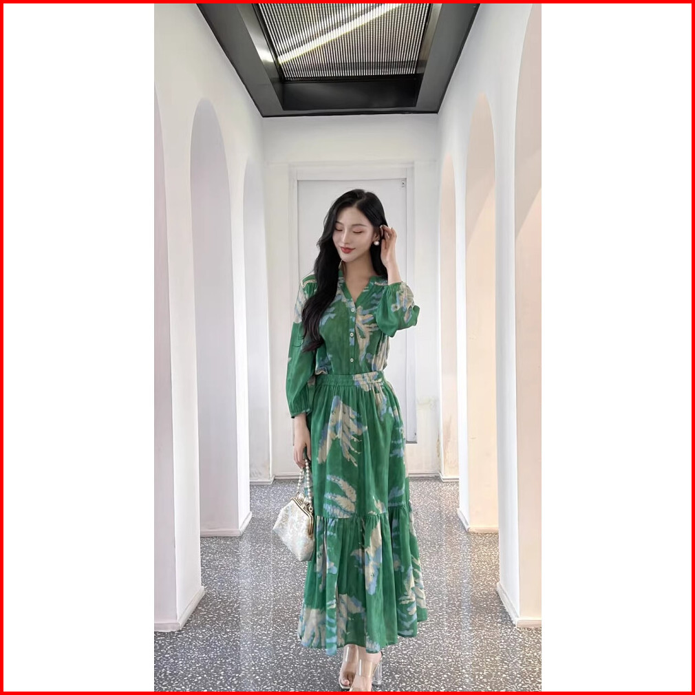 Ready Stockset Rok Wanita Floral Original By Vintage Collared Neck Sexy Elegant Korean Style Ventilasi Temperament Kabel