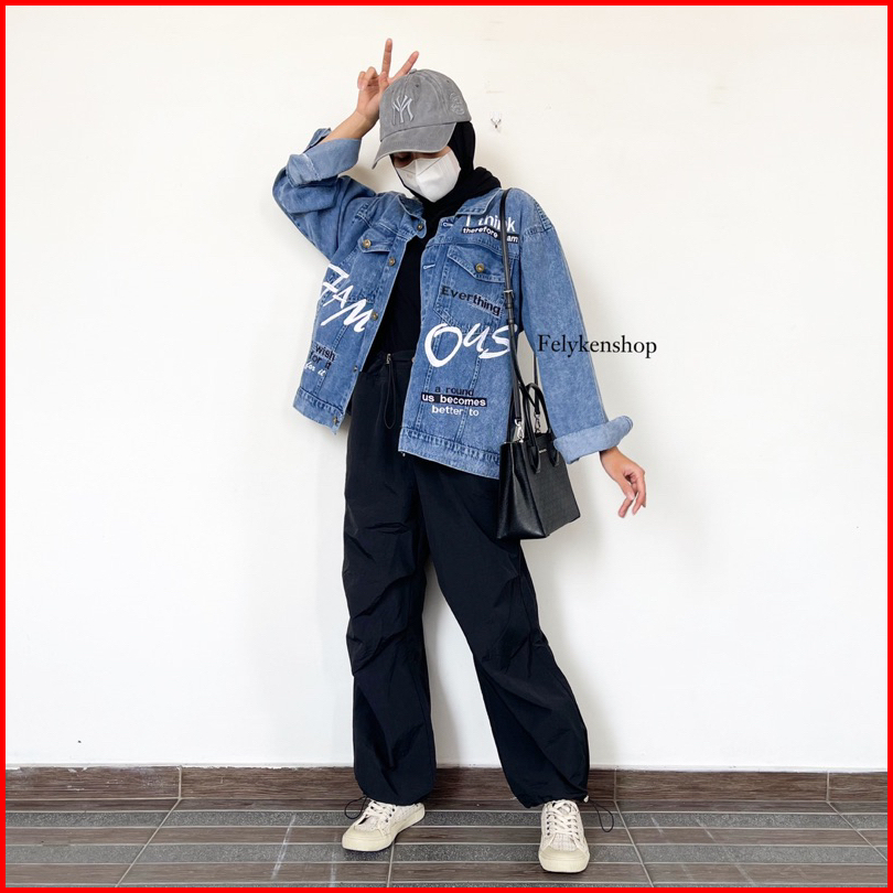 Oversize Jaket Jeans Bordir Words Kode Mp 926 Jaket Wanita Jaket Bordir
