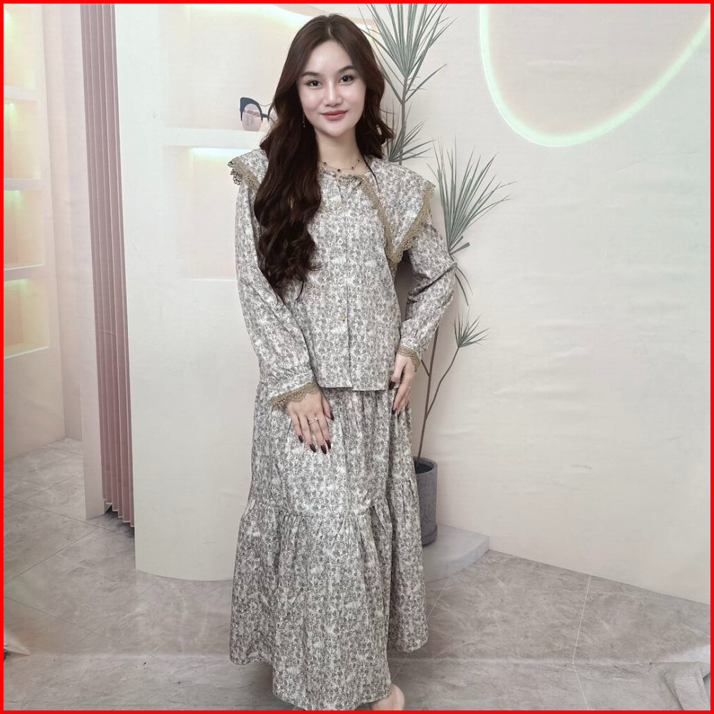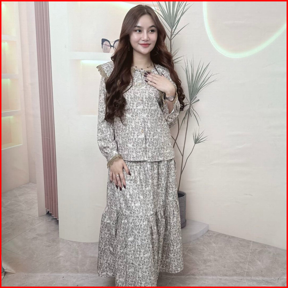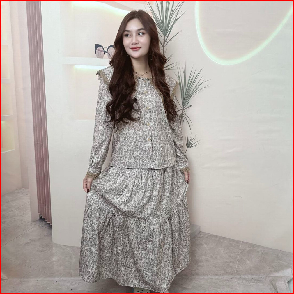 Ready Stockspt 10 12 - Double-flap Shirt Round Neck Original By Chicmore.freshness Flared Floral Suit Fashionable Set Wo