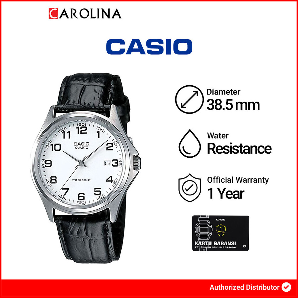 Jam Tangan Pria Casio Mtp-1183e-7b White Dial Black Leather Band
