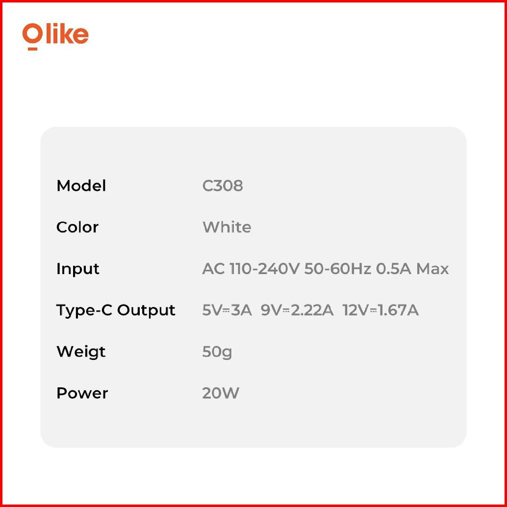 Olike Kepala Charger C308 Kabel Type-c To Type- C Pd 25w Dan Type C To Lightning Fast Charging Pd 20w