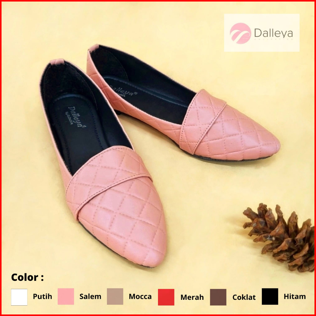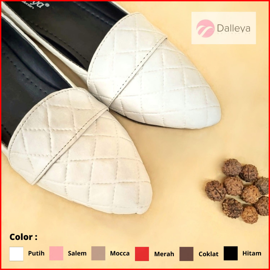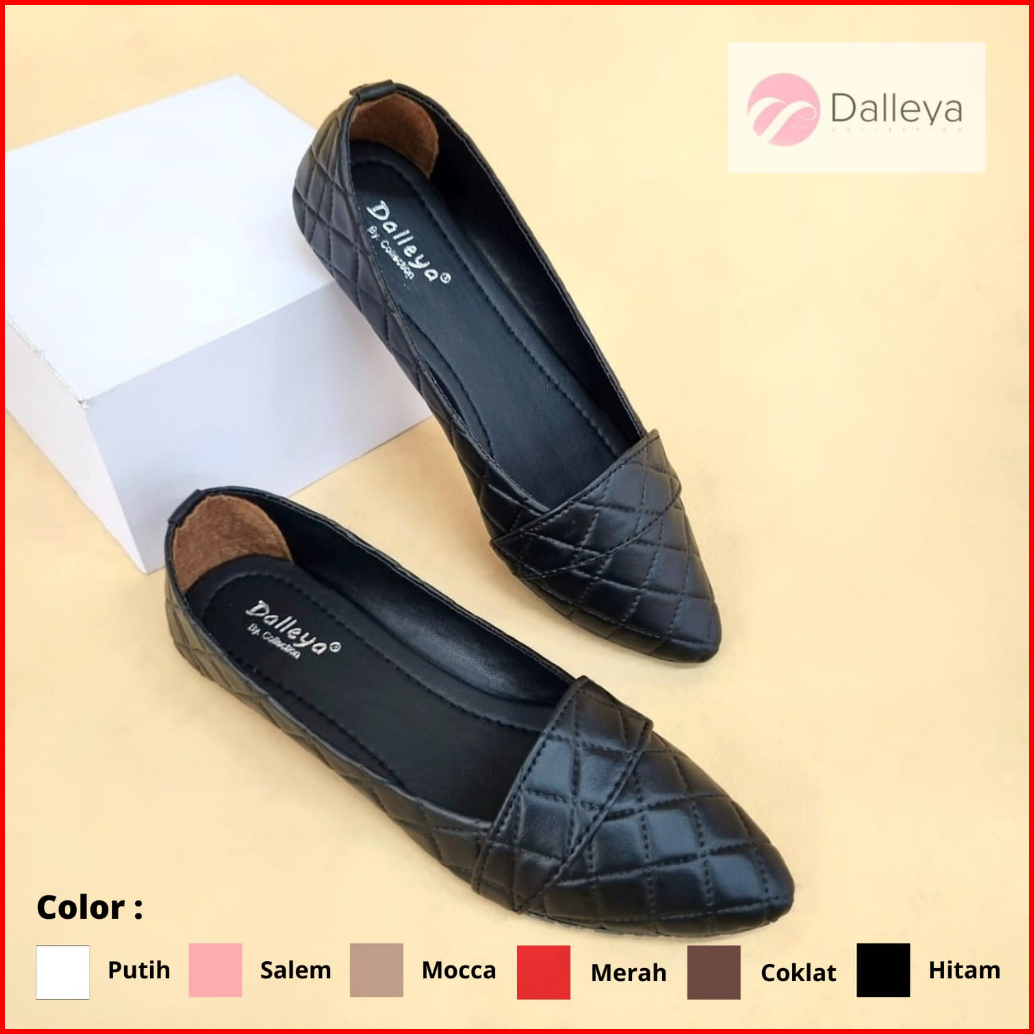 Dalleya Collection - Mauren Flat Shoes Balet Wanita Casual Polos Hitam Putih Moka