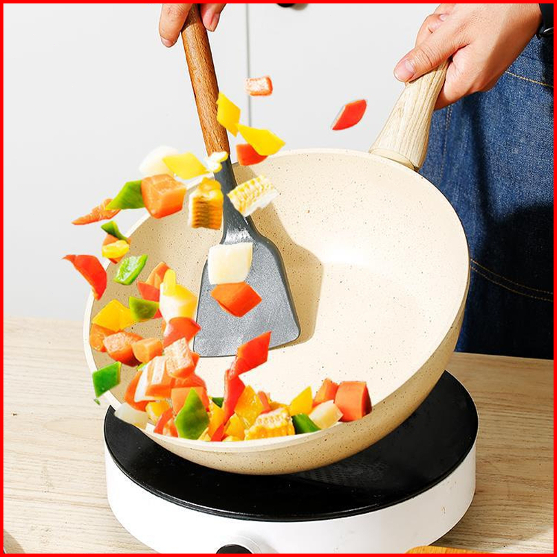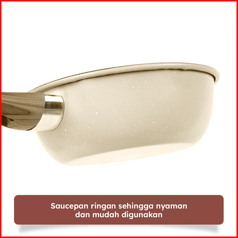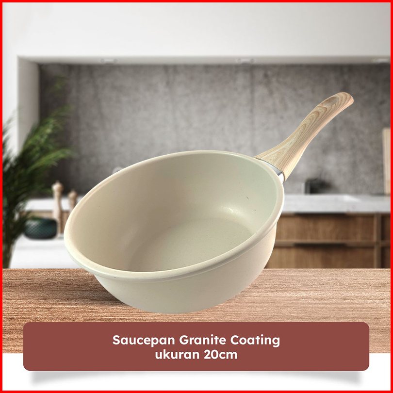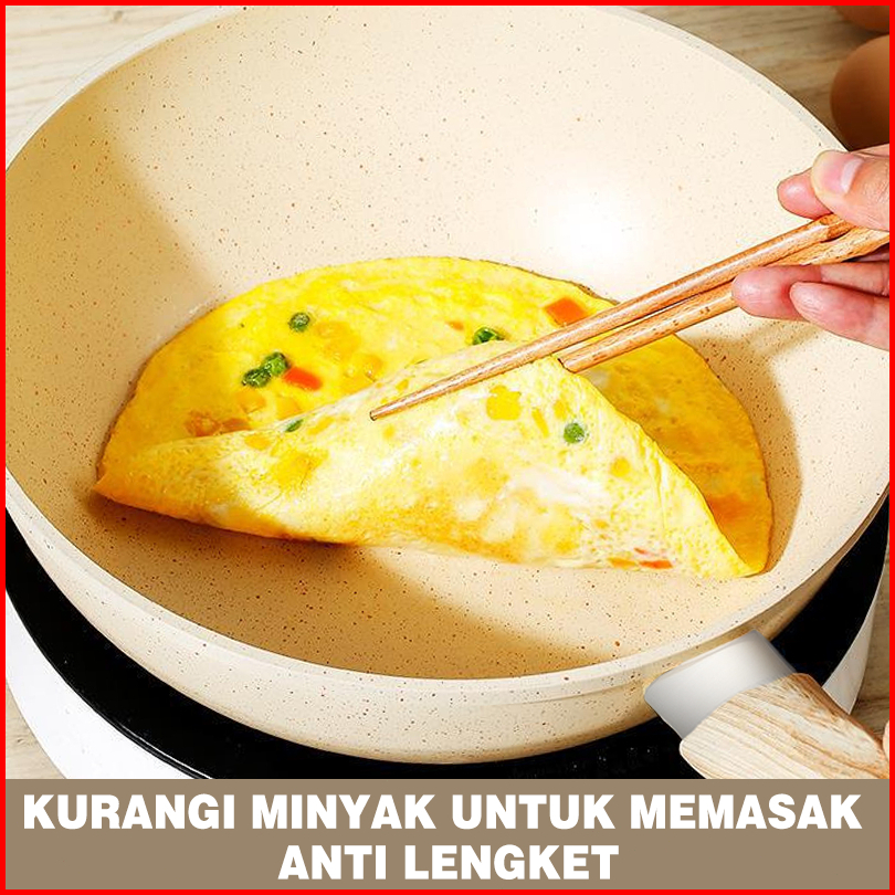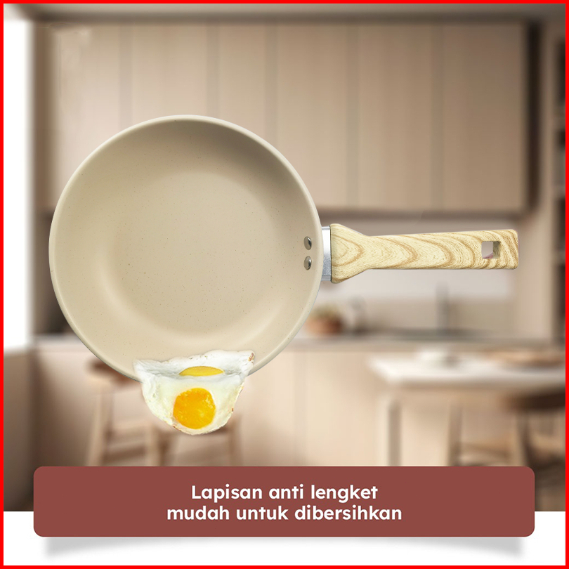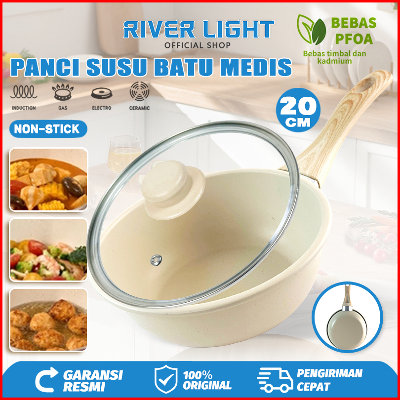 River Light Wajan Anti Lengket 20 Cm Warna Krem Dengan Tutup Dan Gagang Kayu Anti Selip