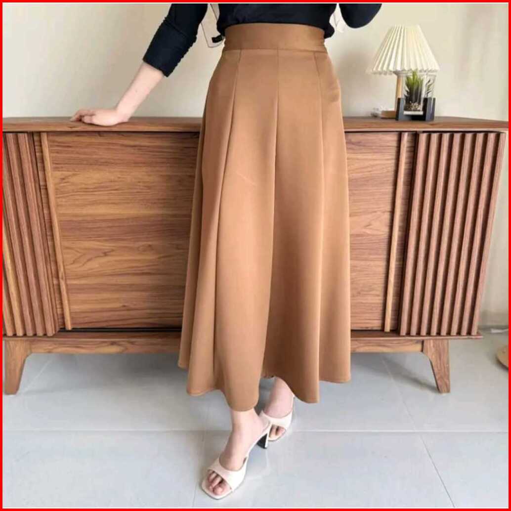 Rok Maxi Wanita Audy Model Loose Anti Kusut Rok Flare Polos Basic Panjang Maxi Skirt