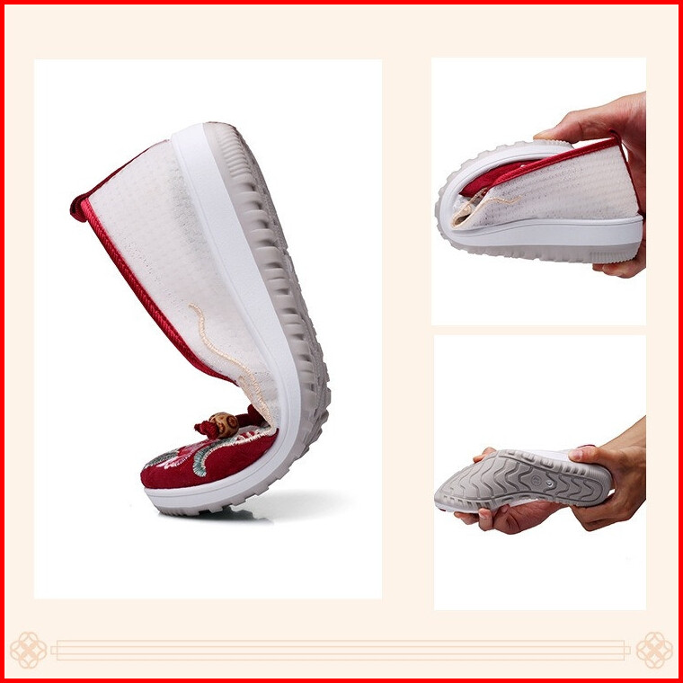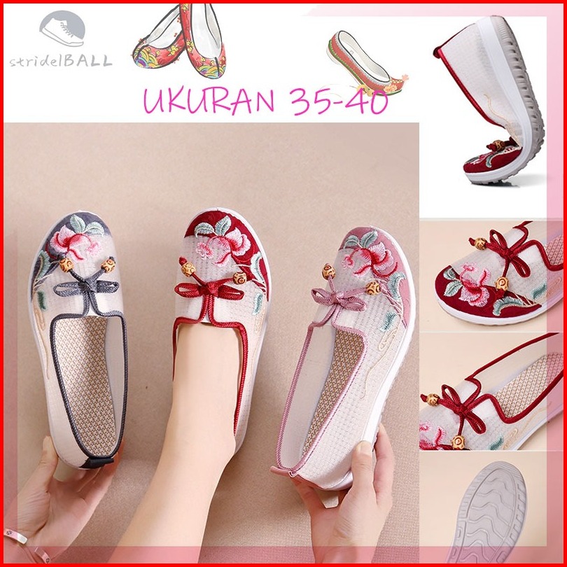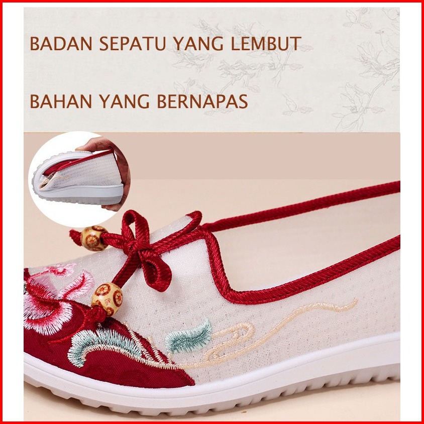 Ready Stock Sepatu Ibu Hanfu Wanita Bordir Slip-on - Jaring Bernapas Anti Slip Pesta Hf04